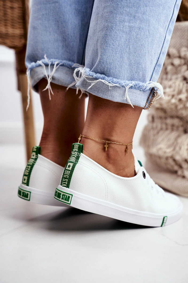 Damskie Skórzane Trampki Big Star GG274006 Biało-Zielone