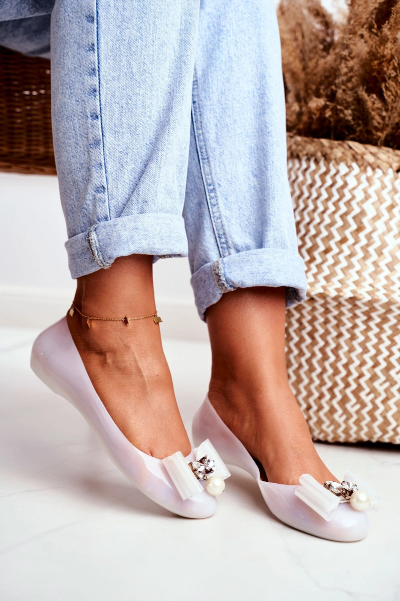 Gumowe Balerinki Białe Meliski Kokardy Perełka Millie