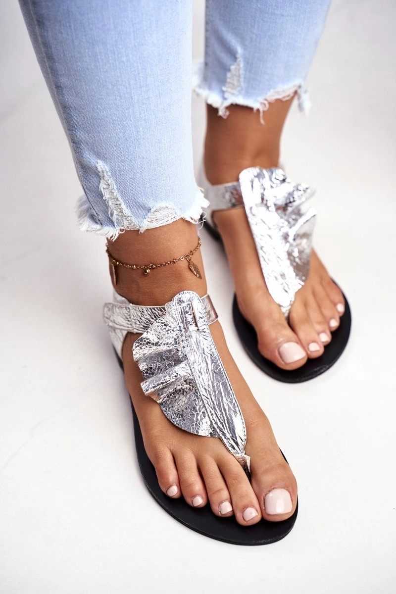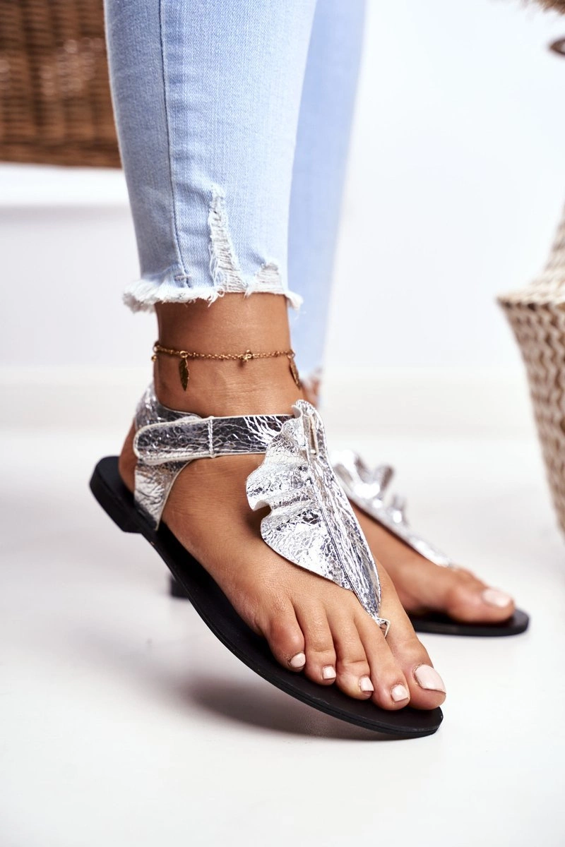 Lu Boo Sandałki Metaliczne Japonki Na Rzepy Lottie