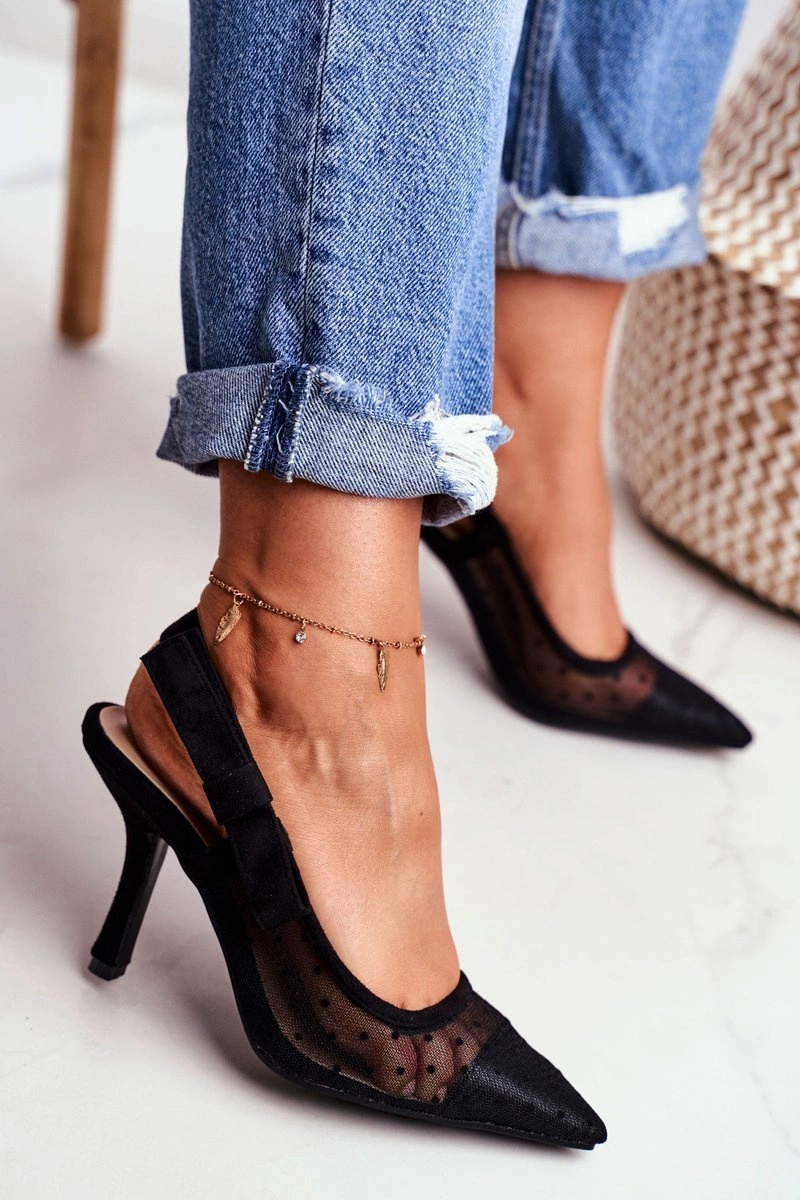 Wygodne szpilki z siateczki w szpic to marzenie każdej kobiety! Model posiada pasek wokół kostki, który jest wykonany z gumki, więc będzie idealnie dopasowany i wygodny w zakładaniu. Siateczka została przyozdobiona malutkimi kropeczkami z zamszu, co sprawia, że szpilki są niezwykle kobiece. Przy wyborze rozmiaru prosimy kierować się tabelą rozmiarów.