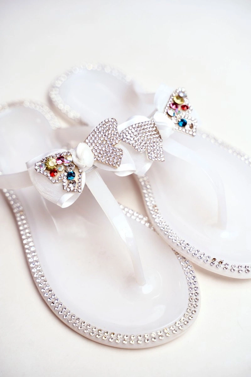 Damskie Gumowe Klapki Białe Japonki Cyrkonie Lissy