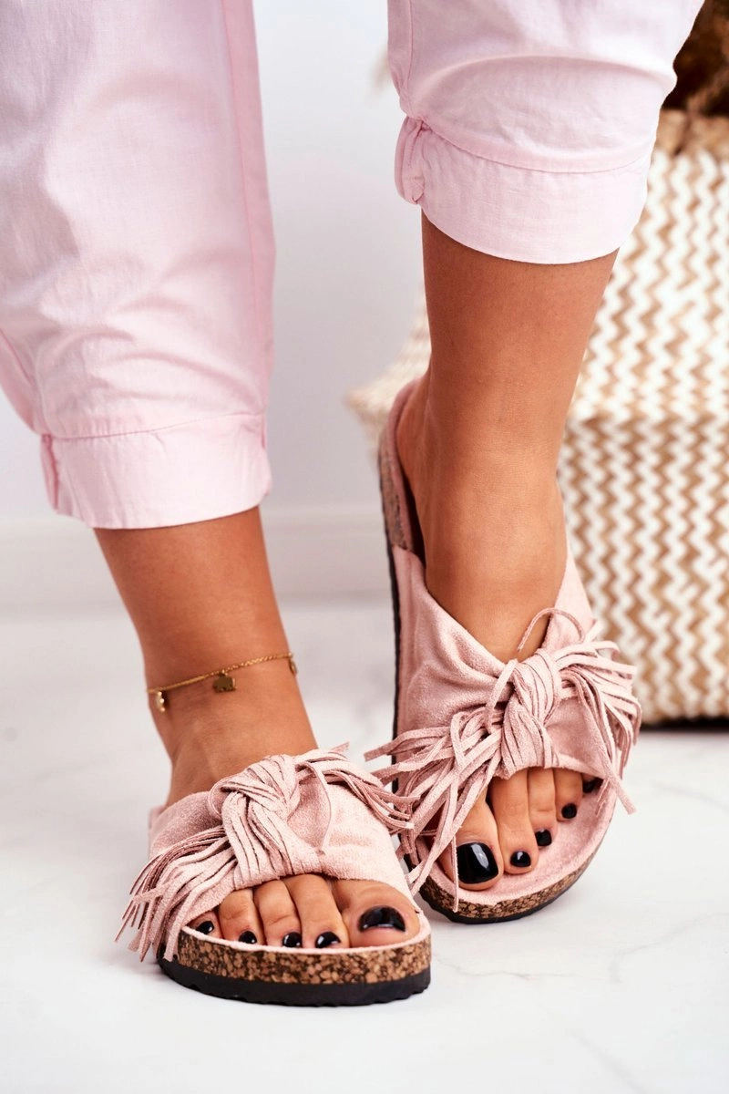 Damskie Brudny Róż Klapki Na Korku Frędzle Marina