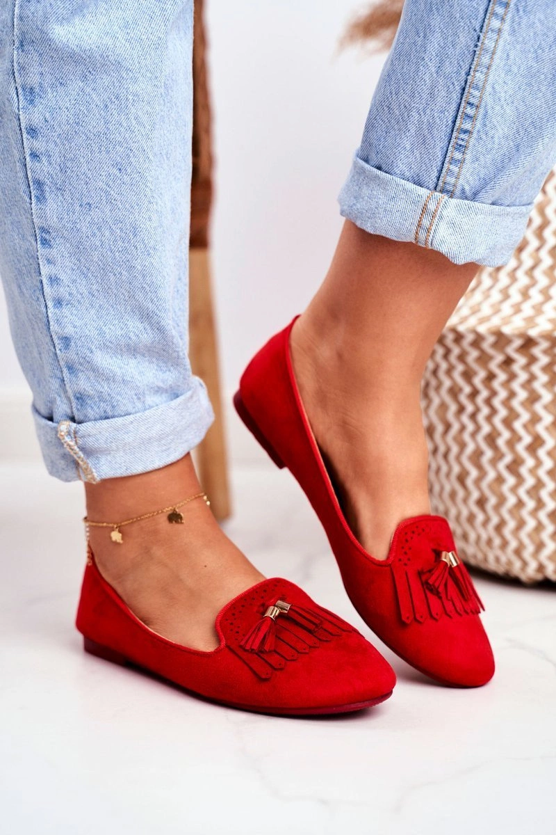Mokasyny Damskie Czerwone Lordsy Frędzle Therese