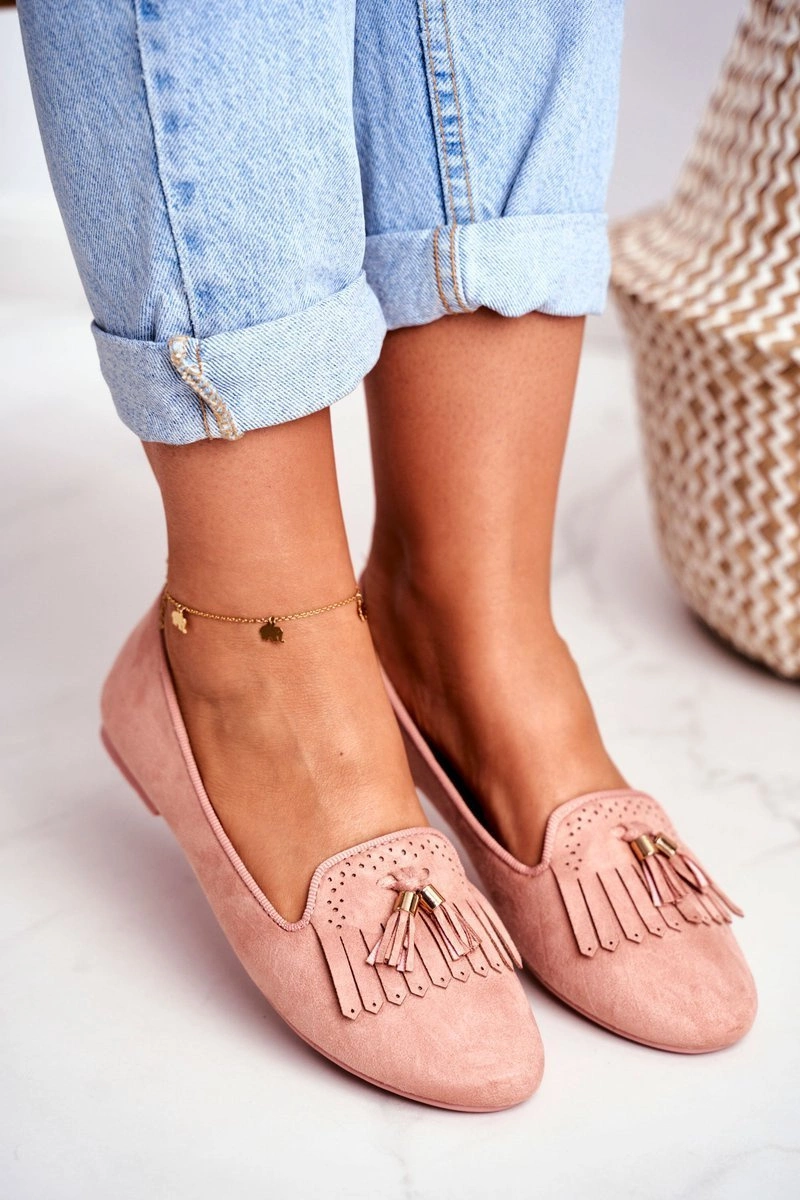 Mokasyny Damskie Różowe Lordsy Frędzle Therese