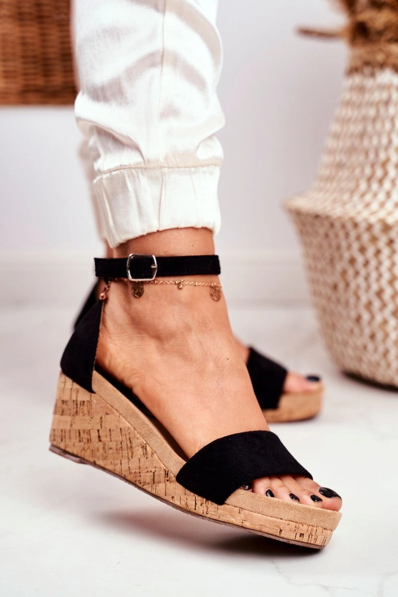 Sandałki Damskie Na Koturnie Czarne MarryMe