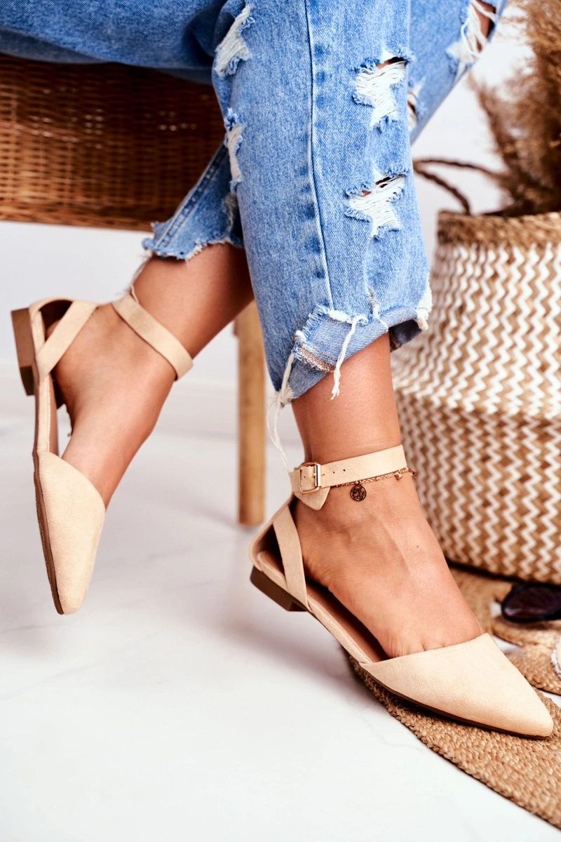 Baleriny Damskie Beżowe Na Pasek W Szpic Allison