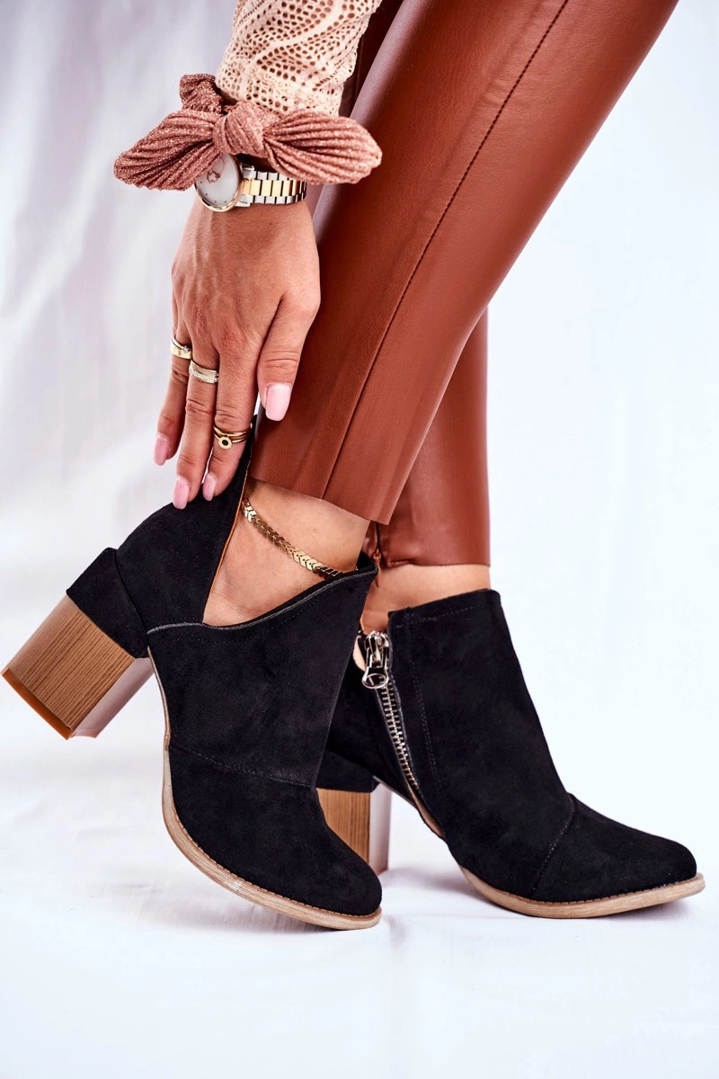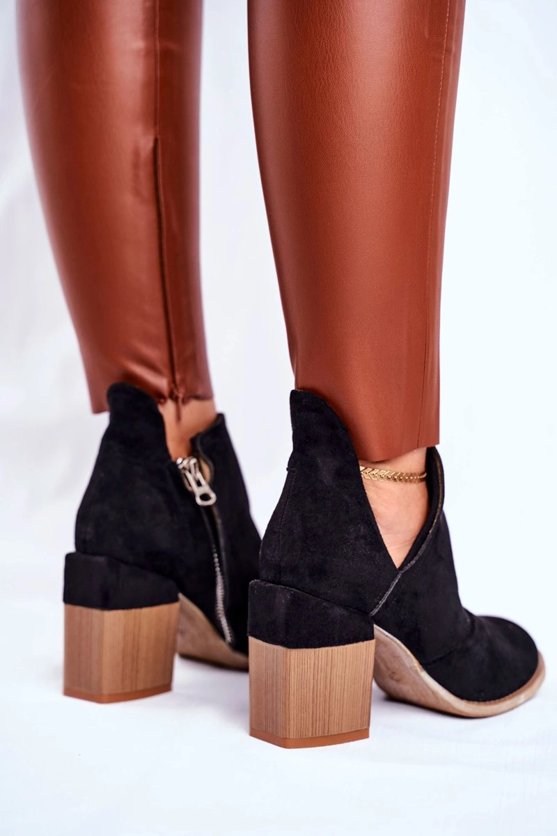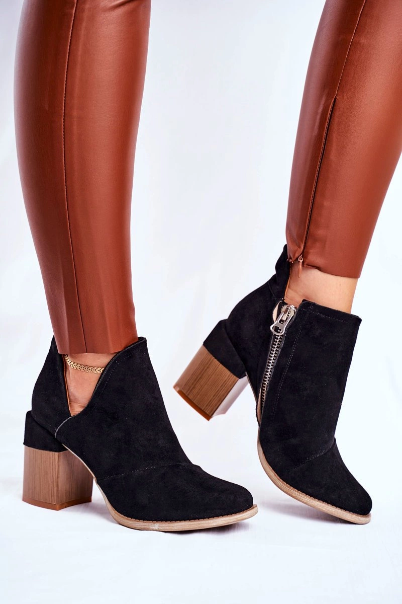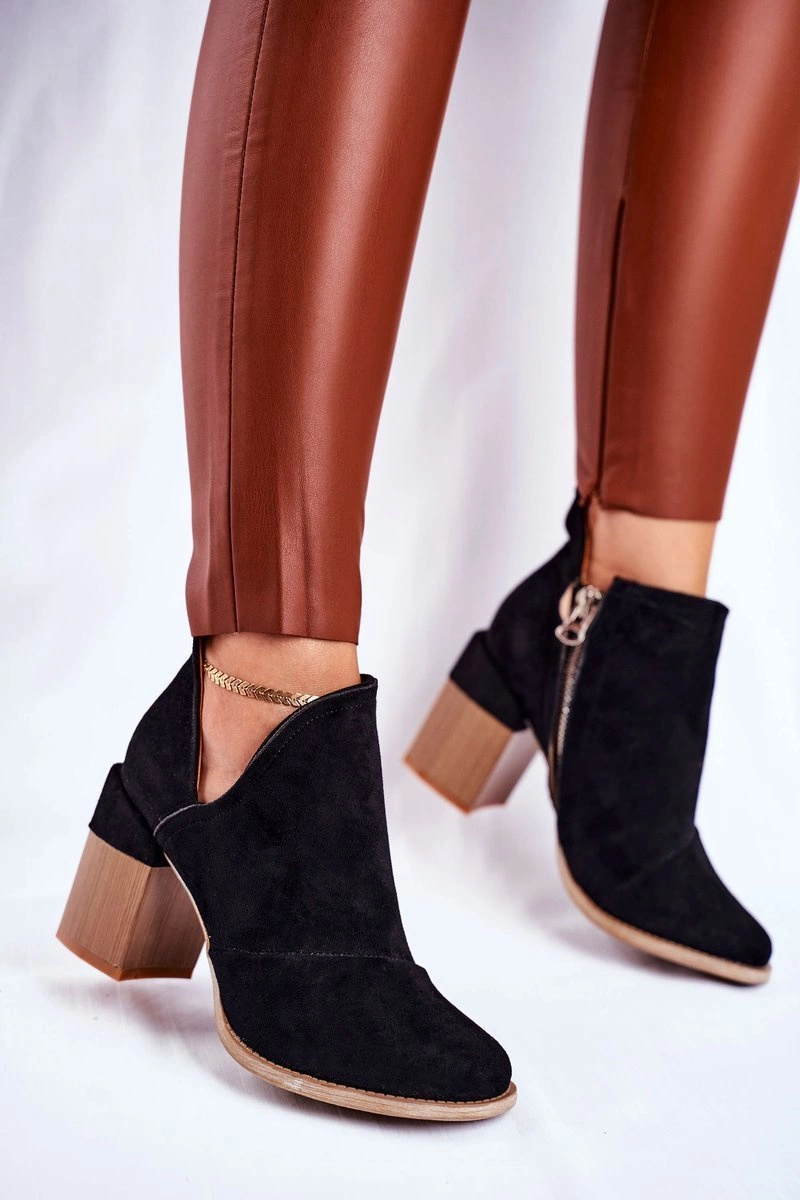 Damskie Botki Na Słupku Czarne Wycięte Meliori