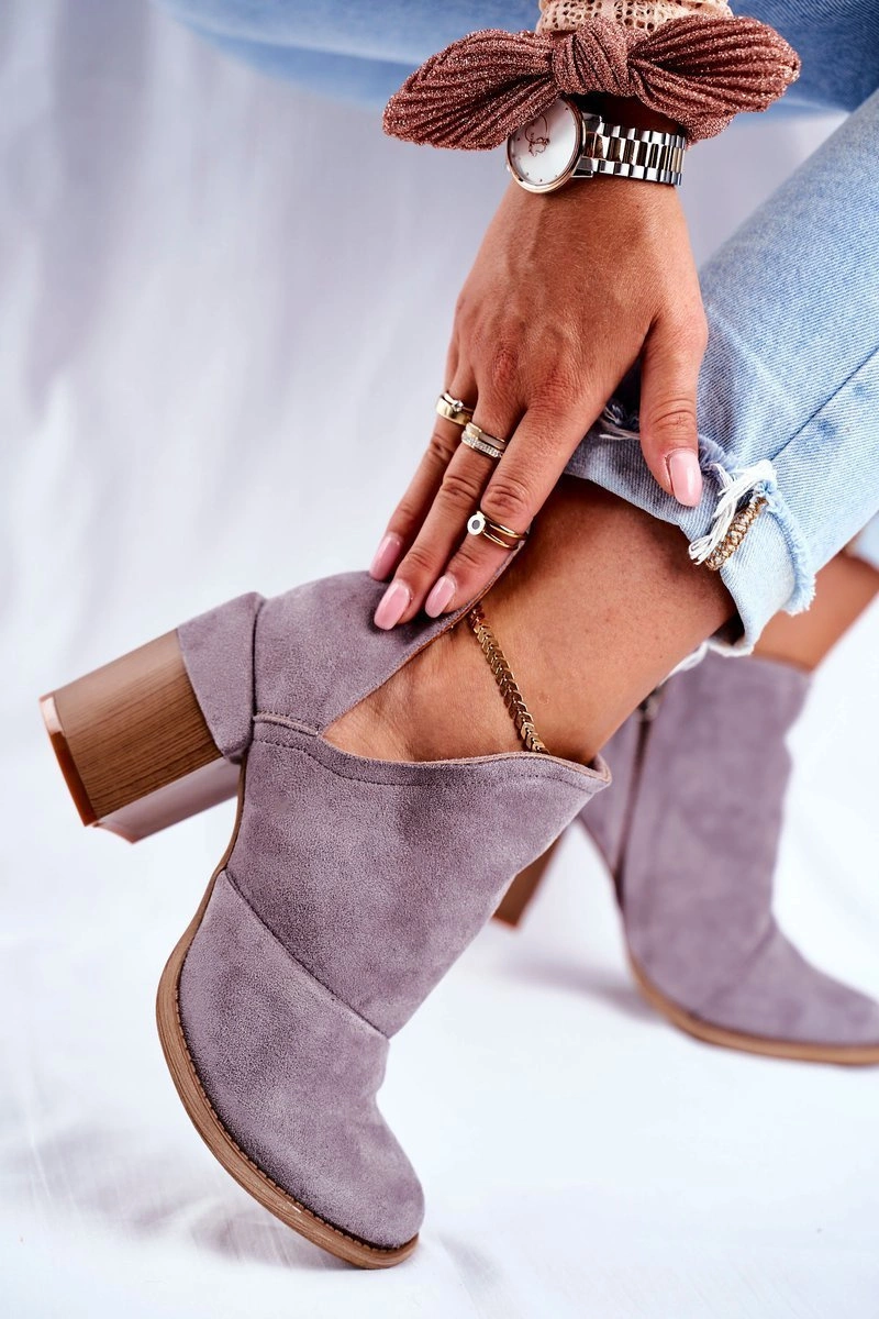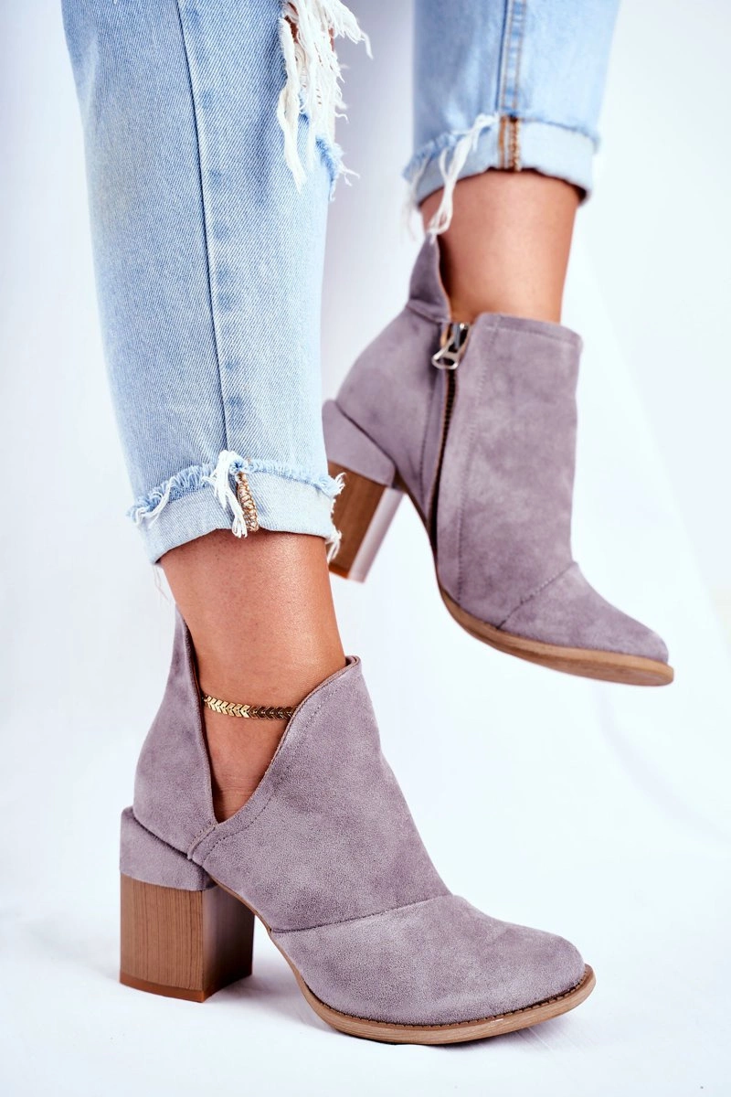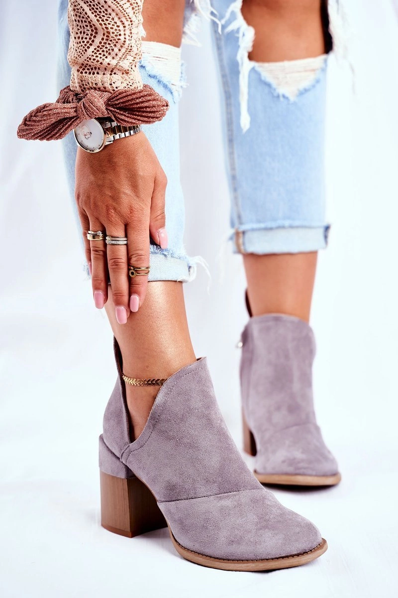 Damskie Botki Na Słupku Szare Wycięte Meliori