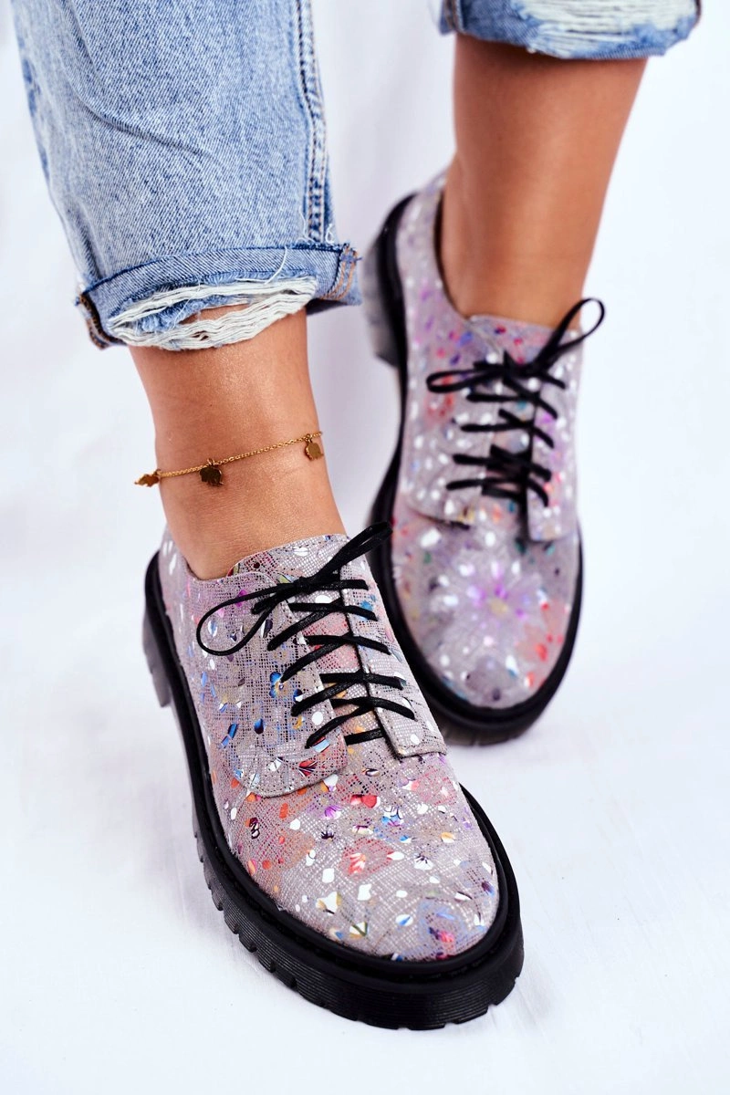 Damskie Półbuty Oxfordy Popiel Skórzane Maciejka 04087-13