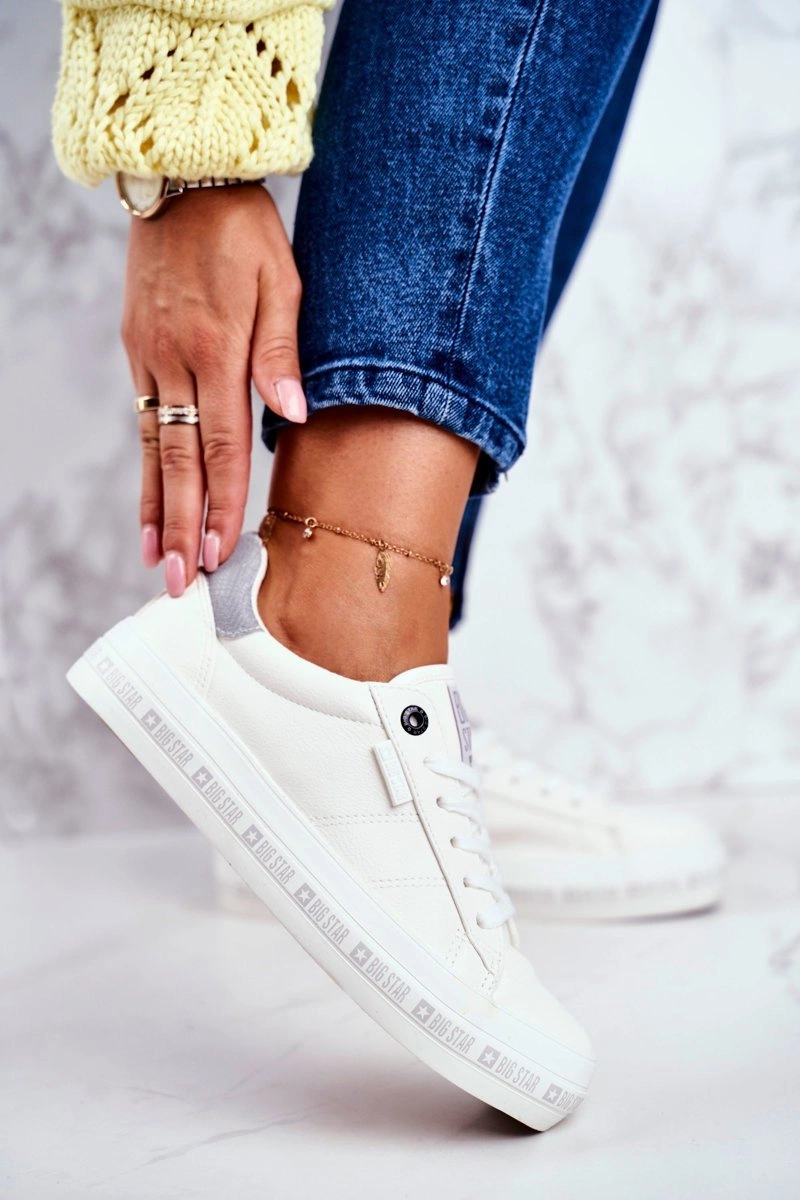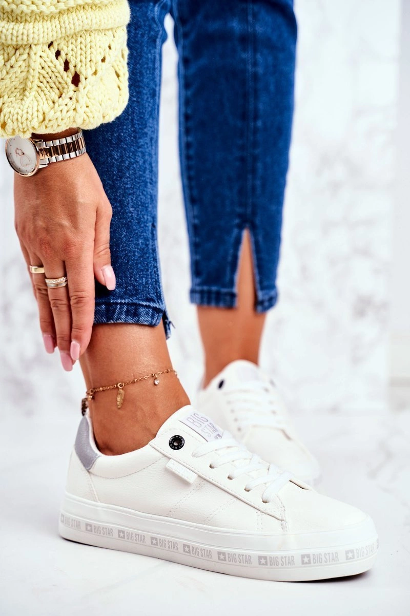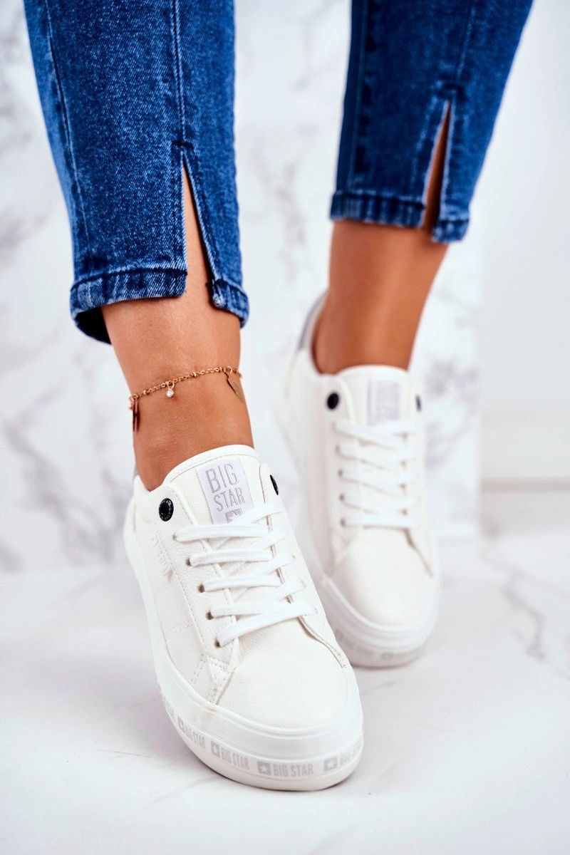 Damskie tenisówki polskiej marki BIG STAR. Klasyczna forma pasuje do wielu stylizacji. Buty dobrze dopasowują się do kształtu stopy, posiadają miękką, materiałową wkładkę. Wykonane są z wysokiej jakości eko skóry. Koniecznie sprawdź całą naszą kolekcję butów BIG STAR. Przy wyborze rozmiaru prosimy sugerować się tabelą rozmiarów.