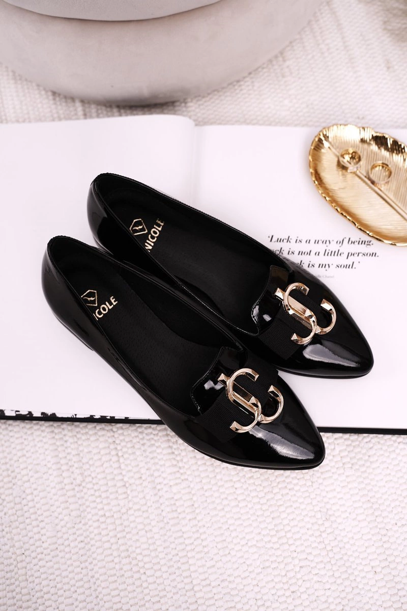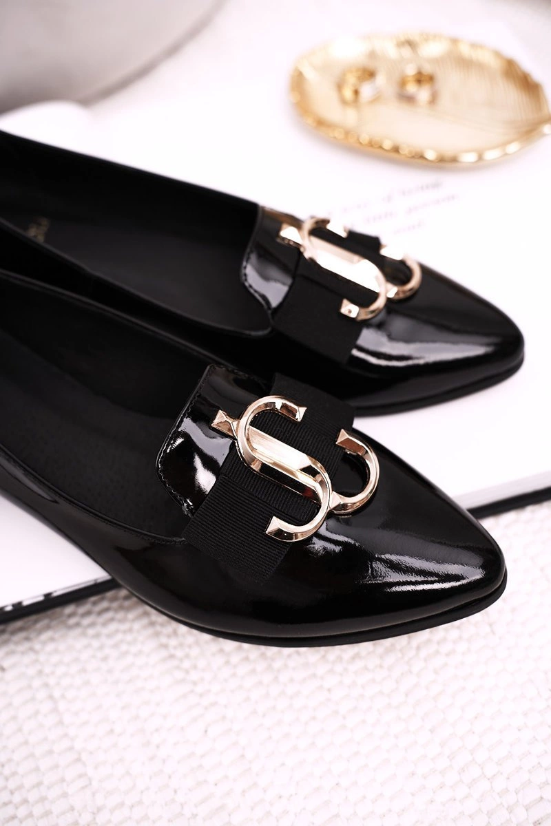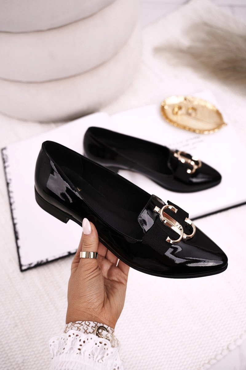 Damskie Skórzane Mokasyny Baleriny Lakierowane Czarne Mary-Jane