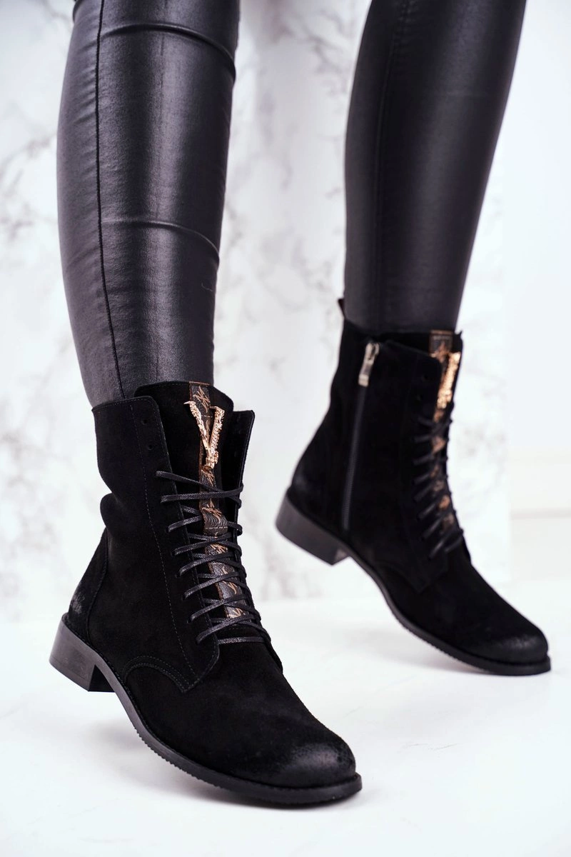 Botki Damskie Skórzane Nubuk Czarne Nicole 2593