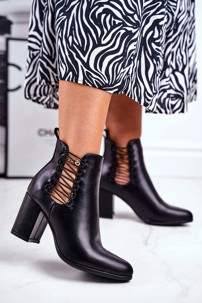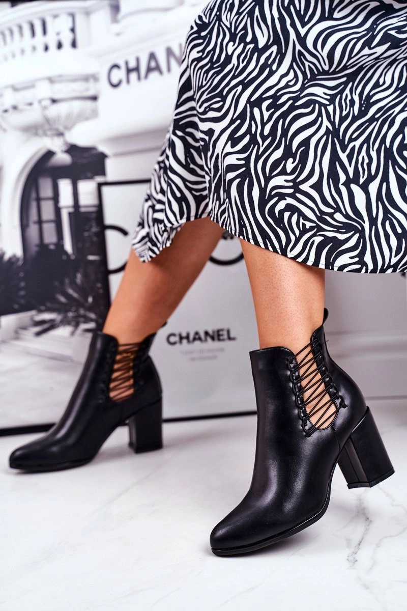 Botki Damskie Na Słupku Wsuwane Z Gumkami Czarne Vibo