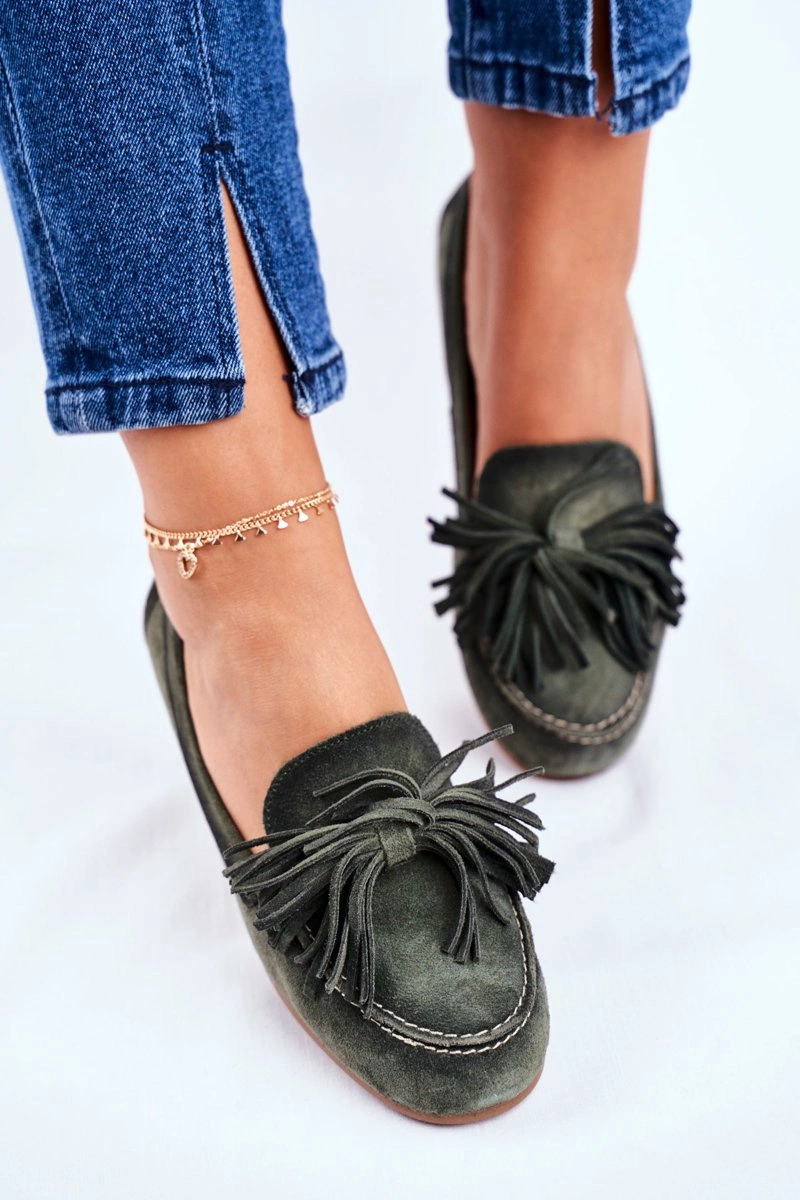 Damskie Mokasyny Maciejka Skórzane Oliwkowe 04830-24