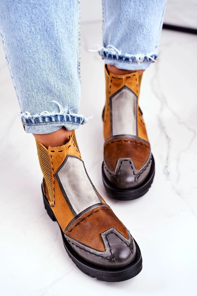 Botki Damskie Skórzane Sztyblety Maciejka Żółte 04634