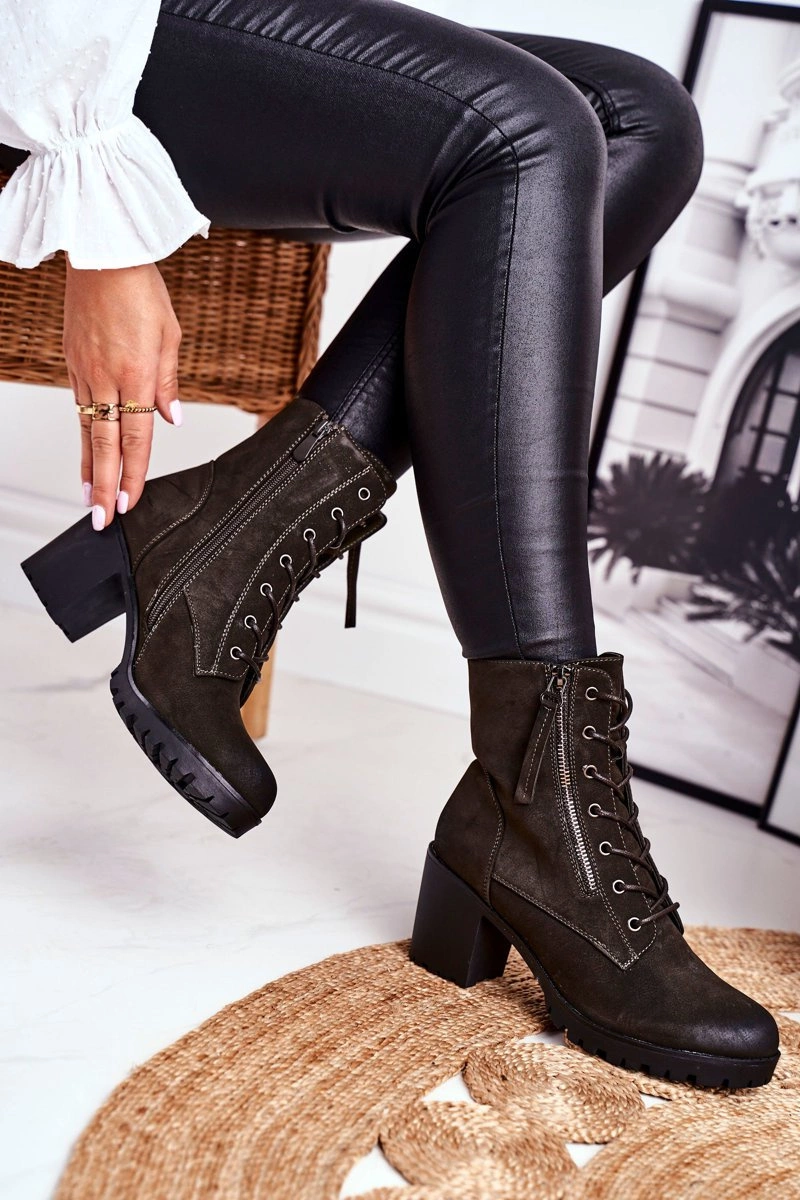 Botki Damskie Na Słupku Ocieplane Khaki Vimen