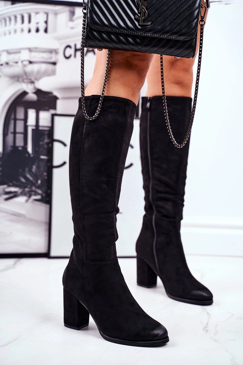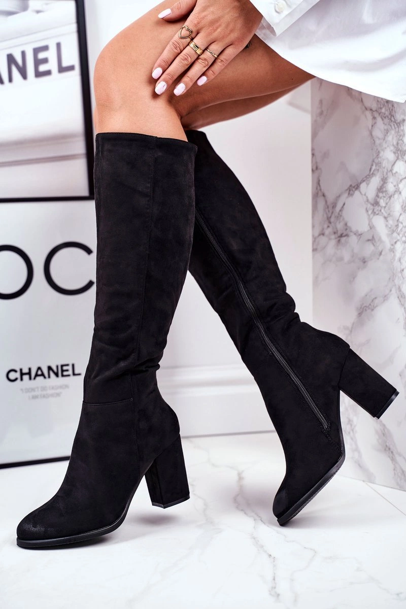 Kozaki Damskie Na Słupku Zamszowe Czarne Many Times