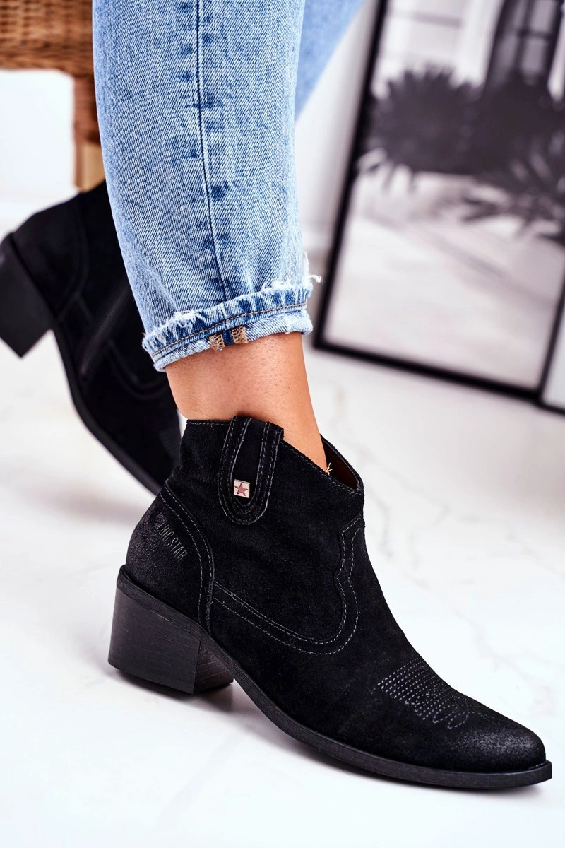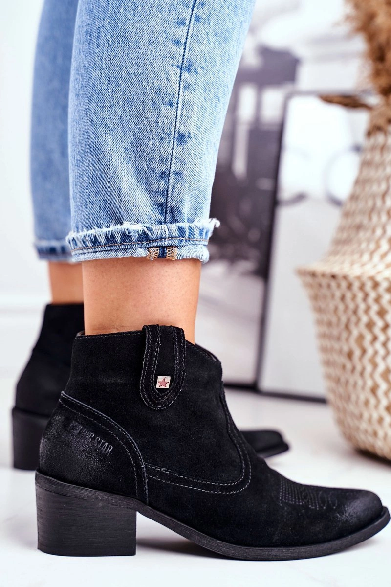Botki Damskie Na Słupku Skórzane Big Star Czarne GG274329