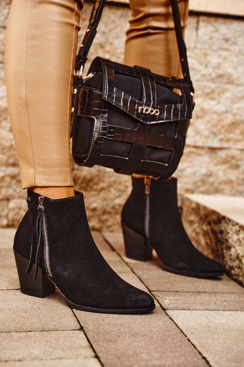 Klasyczne botki, od których nasze klientki nie mogą oderwać oczu. Nic dziwnego, ponieważ buty marki Big Star mają to coś! Modny kolor, który z łatwością można dopasować do wielu stylizacji. Botki na obcasie ze zdobieniem w postaci imitacji zamka błyskawicznego na zewnętrznej stronie. Wierzch wykonany z naturalnej skóry zamszowej. Zakładanie ułatwi drugi zamek znajdujący się po wewnętrznej stronie. Zakochaj się w botkach Big Star już teraz! Przy wyborze rozmiaru prosimy sugerować się tabelą rozmiarów.