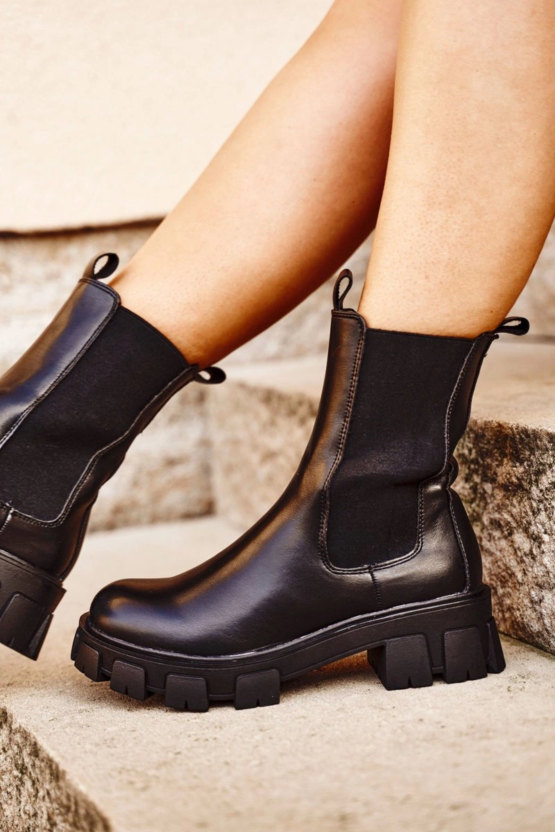 Spójrz na te przepiękne botki! Sztyblety wykonane ze skóry ekologicznej. Masywna podeszwa oraz wysoka cholewka połączona z gumami - to 'must have' w tym sezonie! Botki świetnie wpiszą się w stylizacje glam rock lub grunge. Przy wyborze rozmiaru prosimy sugerować się tabelą rozmiarów.