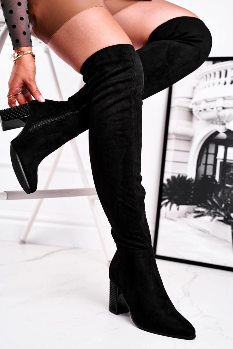Kozaki Damskie Na Słupku Zamszowe Czarne Victoria