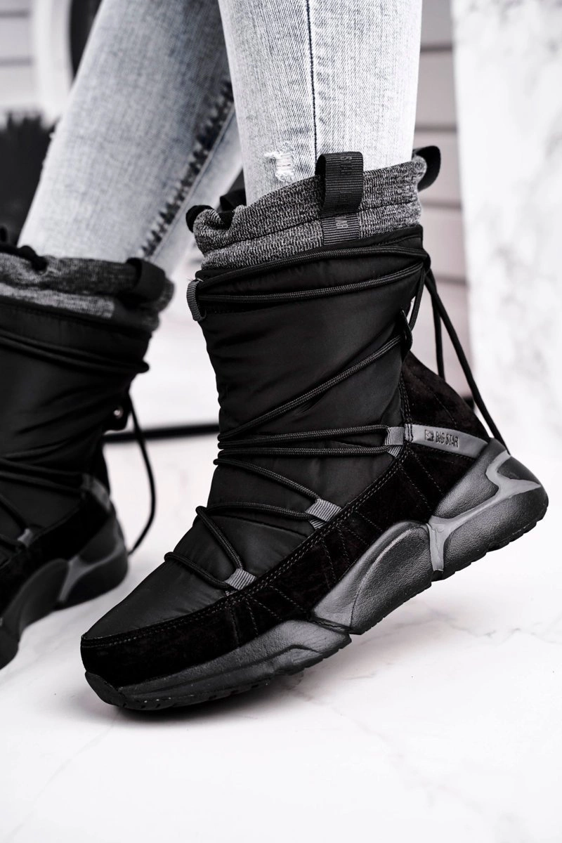 Szukasz czegoś ciepłego i wygodnego na chłodne dni? Niczego lepszego na pewno nie znajdziesz! Najnowsza propozycja śniegowców od firmy Big Star! Buty wewnątrz są niesamowicie miłe w dotyku dzięki zastosowaniu ocieplenia w postaci kożuszka. Zewnętrzna część buta została wykonana z materiału tekstylnego oraz skóry zamszowej. Solidne sznurowanie zapewni idealne dopasowanie się buta do nogi. W tych śniegowcach żadna pogoda nie będzie Ci straszna! Przy wyborze rozmiaru prosimy kierować tabelą rozmiarów.