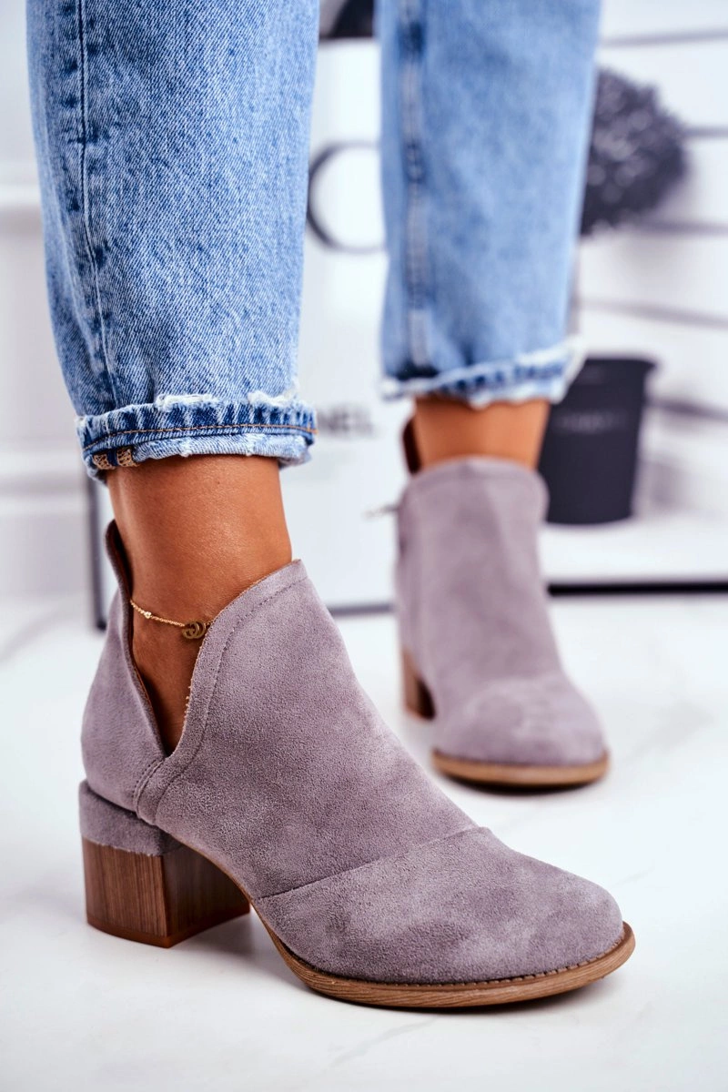 Botki to jedne z najbardziej uniwersalnych i kobiecych butów. Niewątpliwie ten model będzie jednym z Twoich ulubionych! To wszystko dzięki masywnemu obcasowi w formie klocka, który pozwoli Ci nosić wysokie buty, zachowując stabilność i komfort użytkowania w 100%. Śliskie powierzchnie od dziś nie będą Ci straszne! Uniesiony zapiętek i wycięty zewnętrzny bok buta tworzy geometryczną harmonię i sprawia, iż obuwie jest bardzo eleganckie. Ta zgrabna forma idealnie wysmukli Twoją nogę, a Ty poczujesz się jeszcze piękniejsza! O ile to możliwe:) Przy wyborze rozmiaru prosimy sugerować się tabelą rozmiarów.