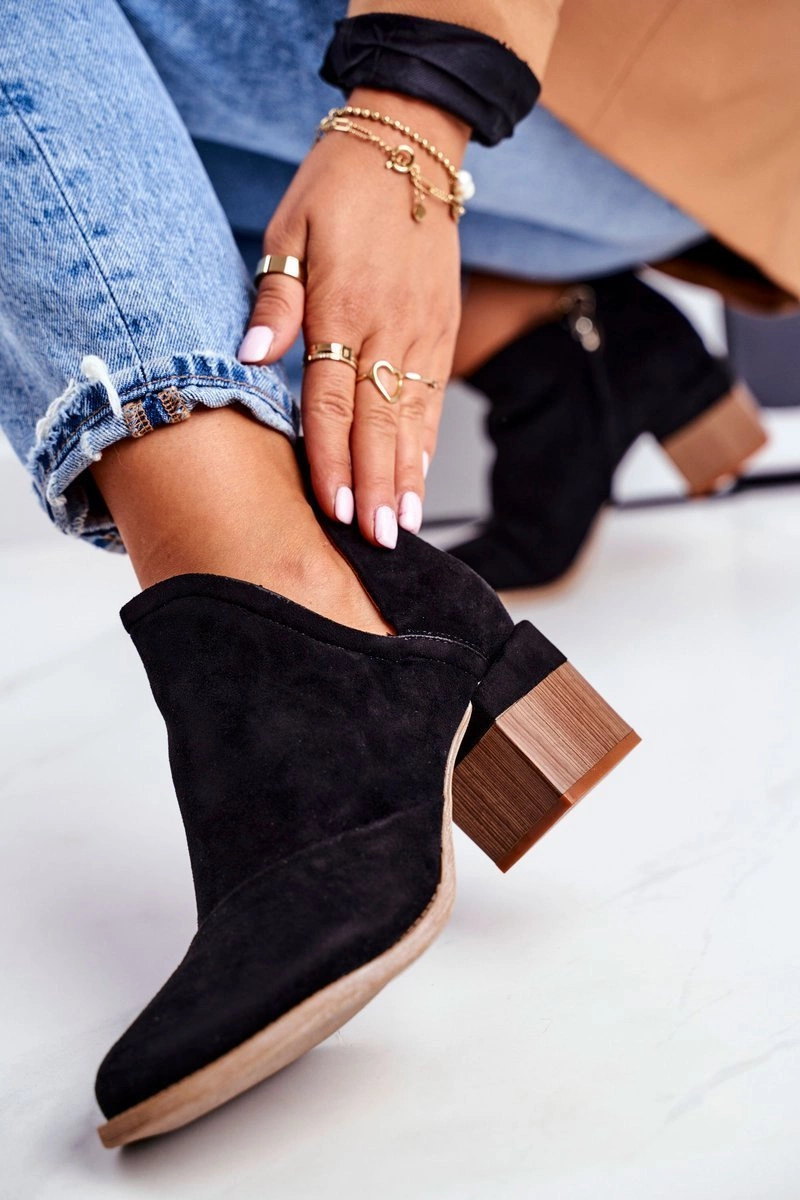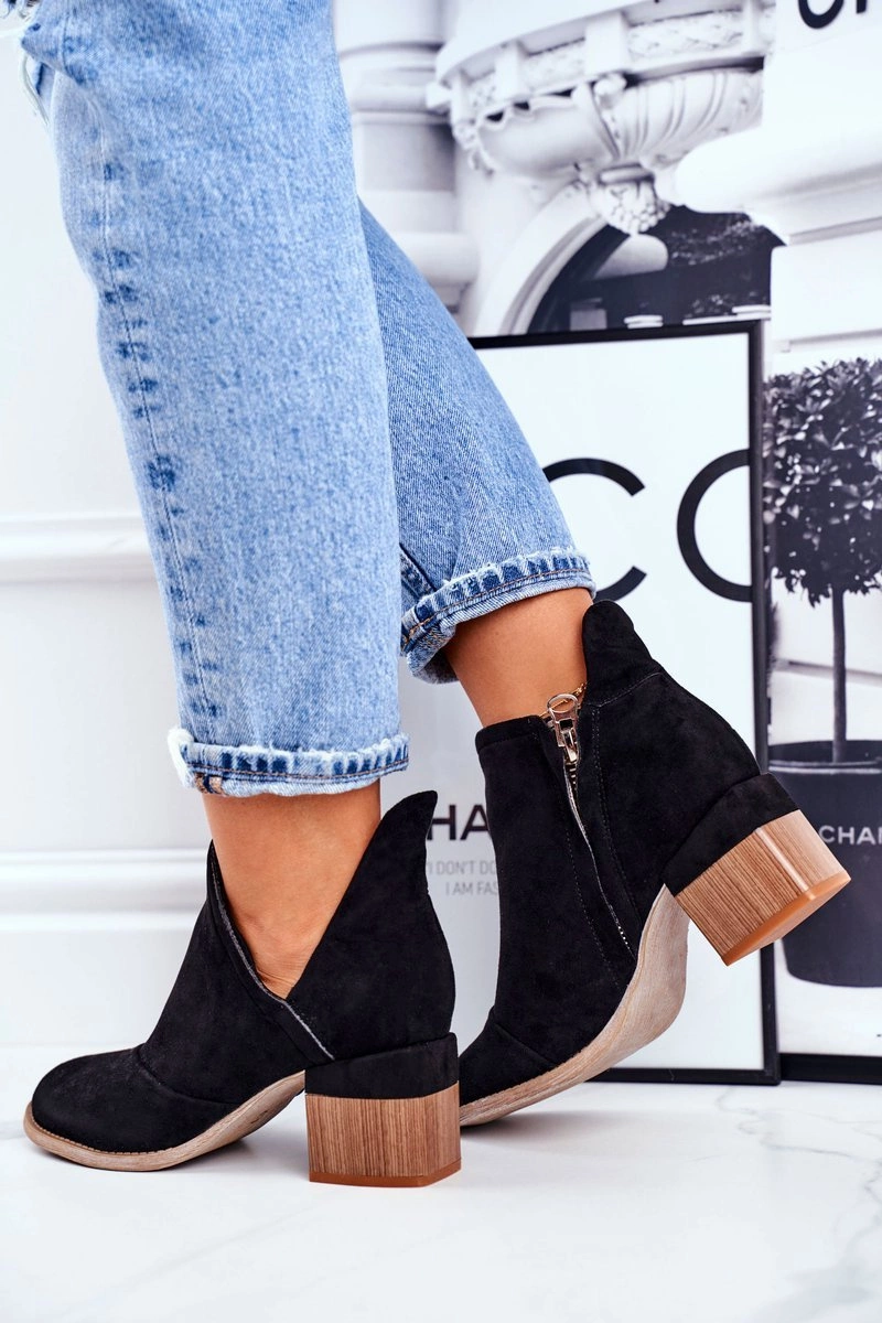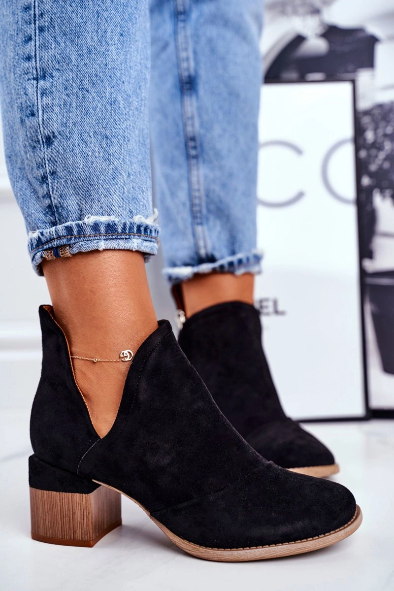 Damskie Botki Na Słupku Wycięte Czarne Mini Meliori