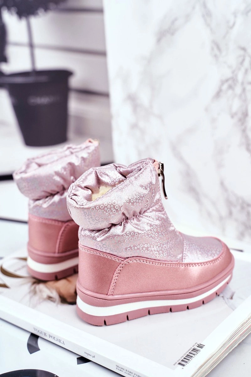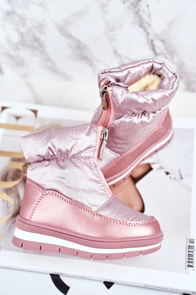Dziecięce Śniegowce Ocieplane Wełną Różowe Bubbles