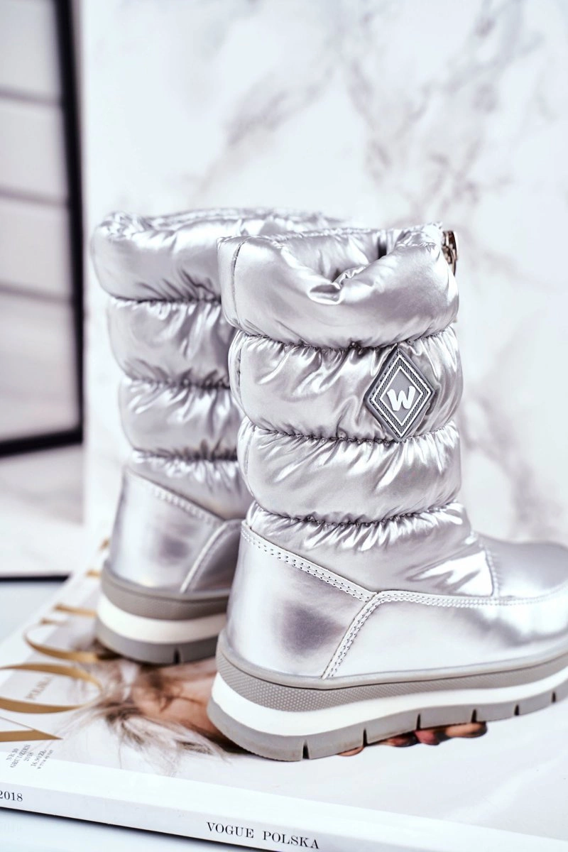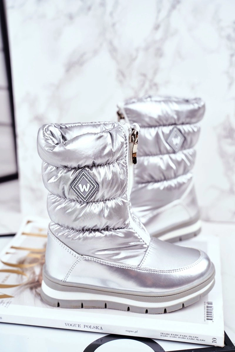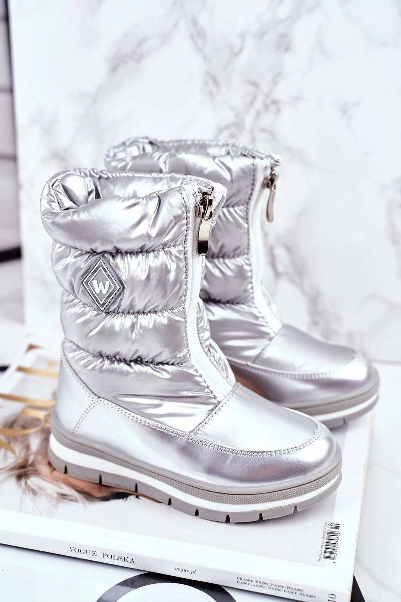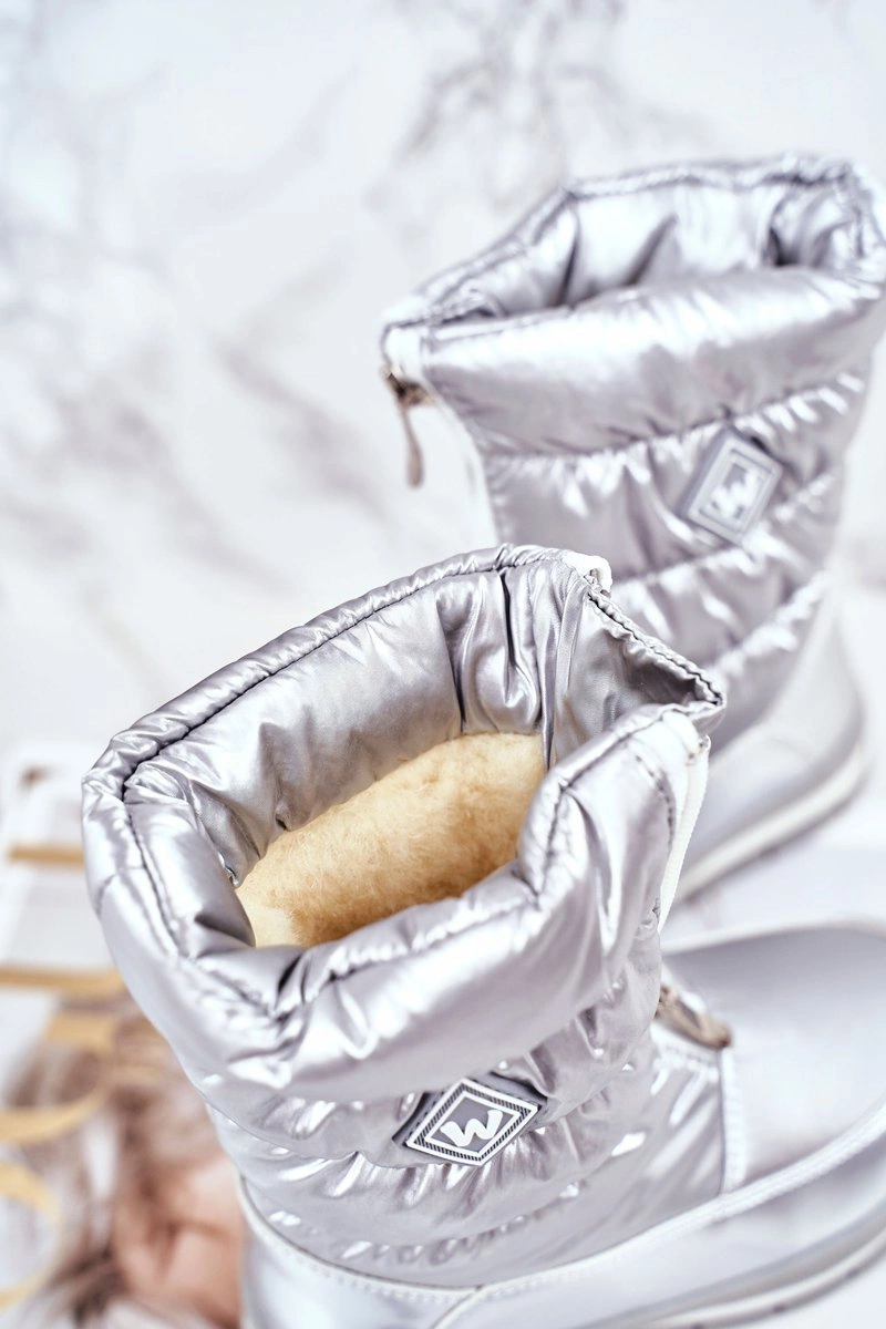 Dziecięce Śniegowce Ocieplane Wełną Srebrne Mumm