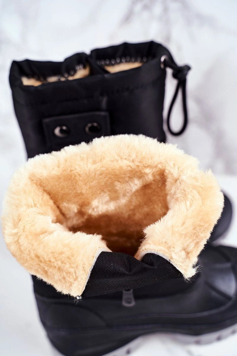 Dziecięce Śniegowce Ocieplone Futerkiem Czarne Hot Winter