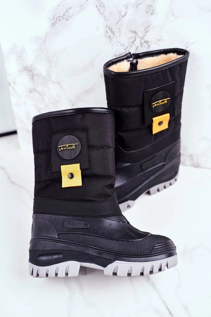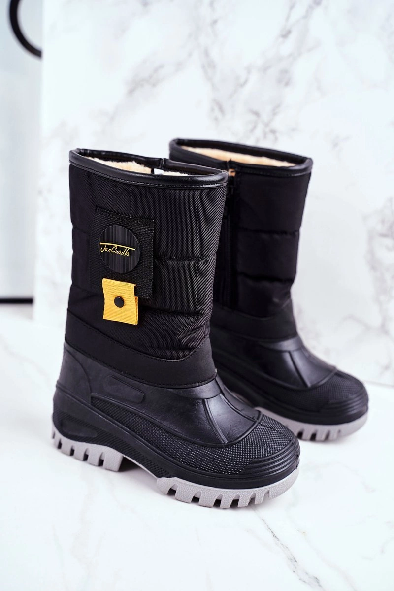 Dziecięce Śniegowce Ocieplone Futerkiem Czarne Rubbi
