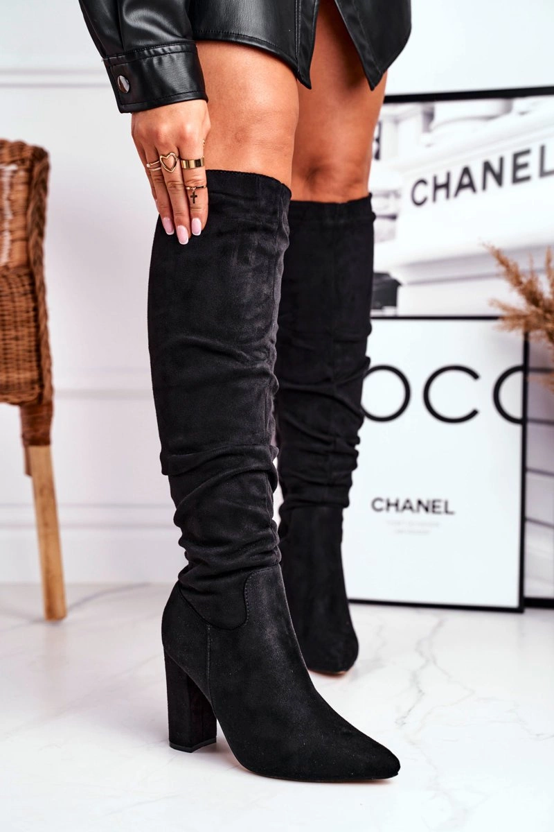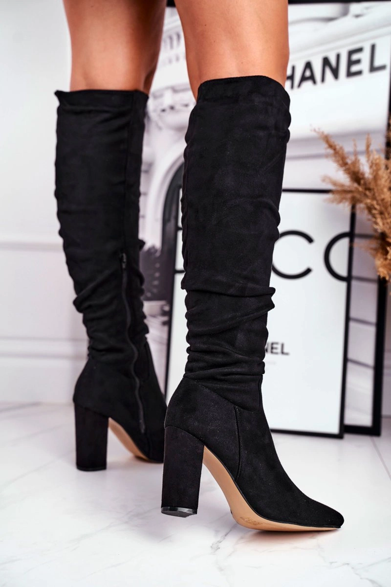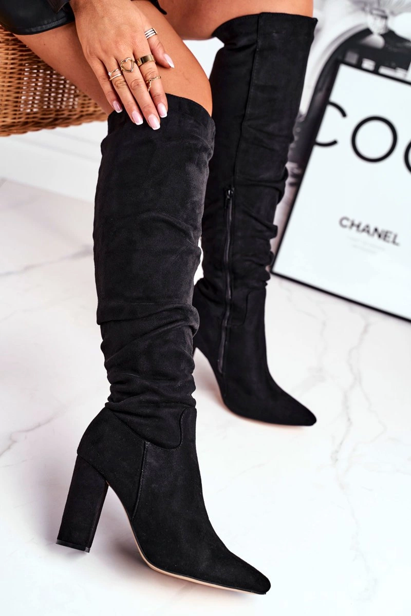 Kozaki Damskie Na Słupku Zamszowe Czarne Pomestro