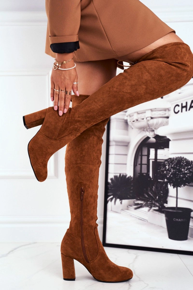 Kozaki Damskie Zamszowe Na Słupku Camel Highso