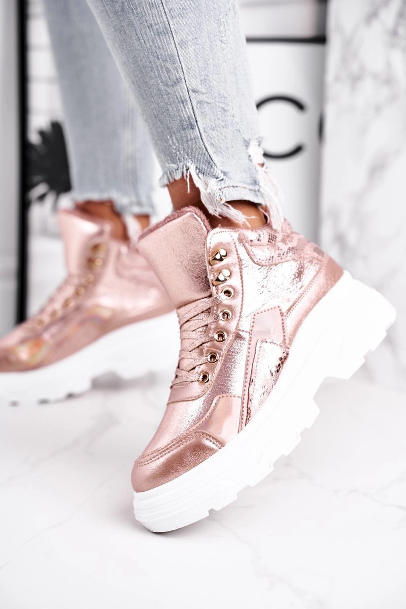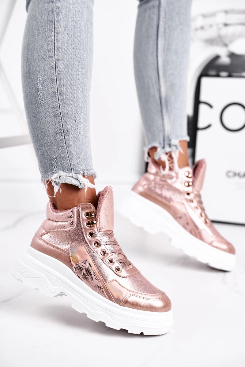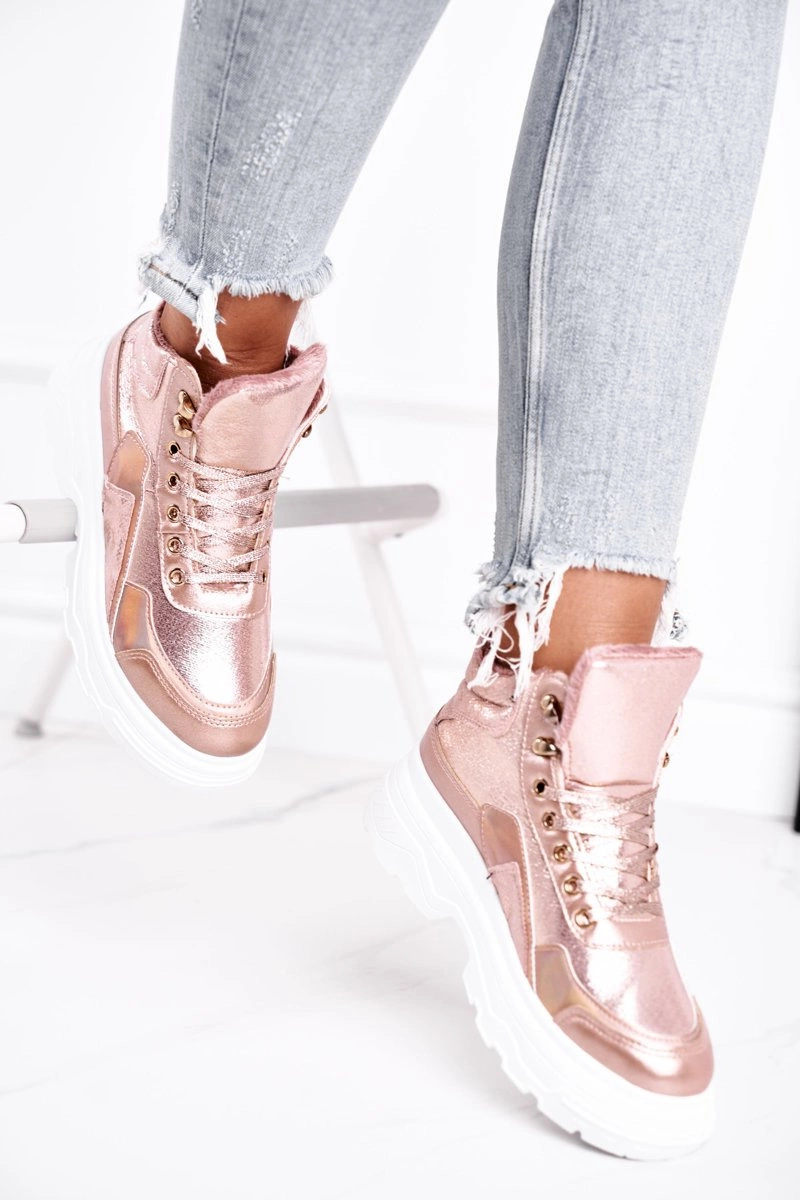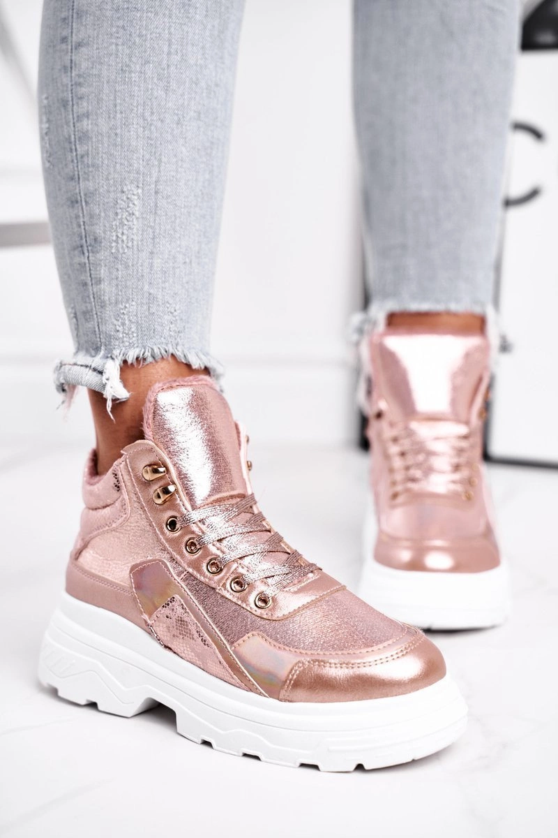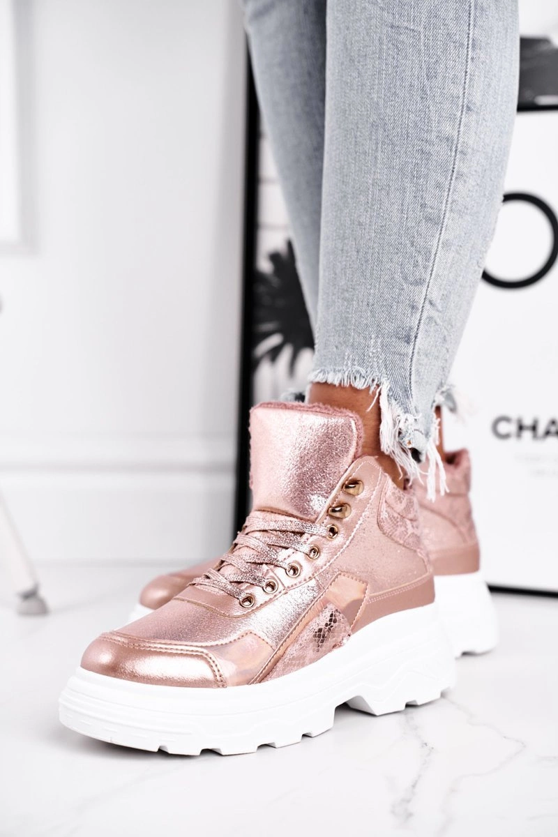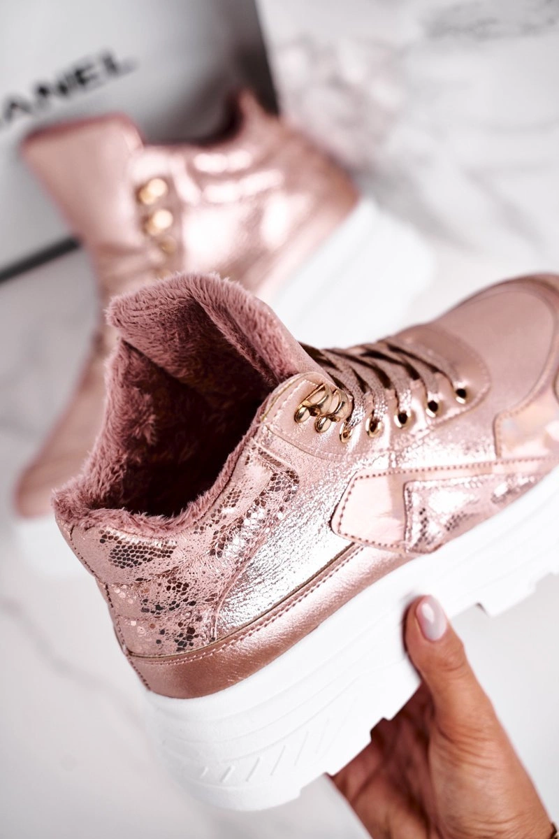 Sportowe Damskie Buty Ocieplane Różowo Złote Davan