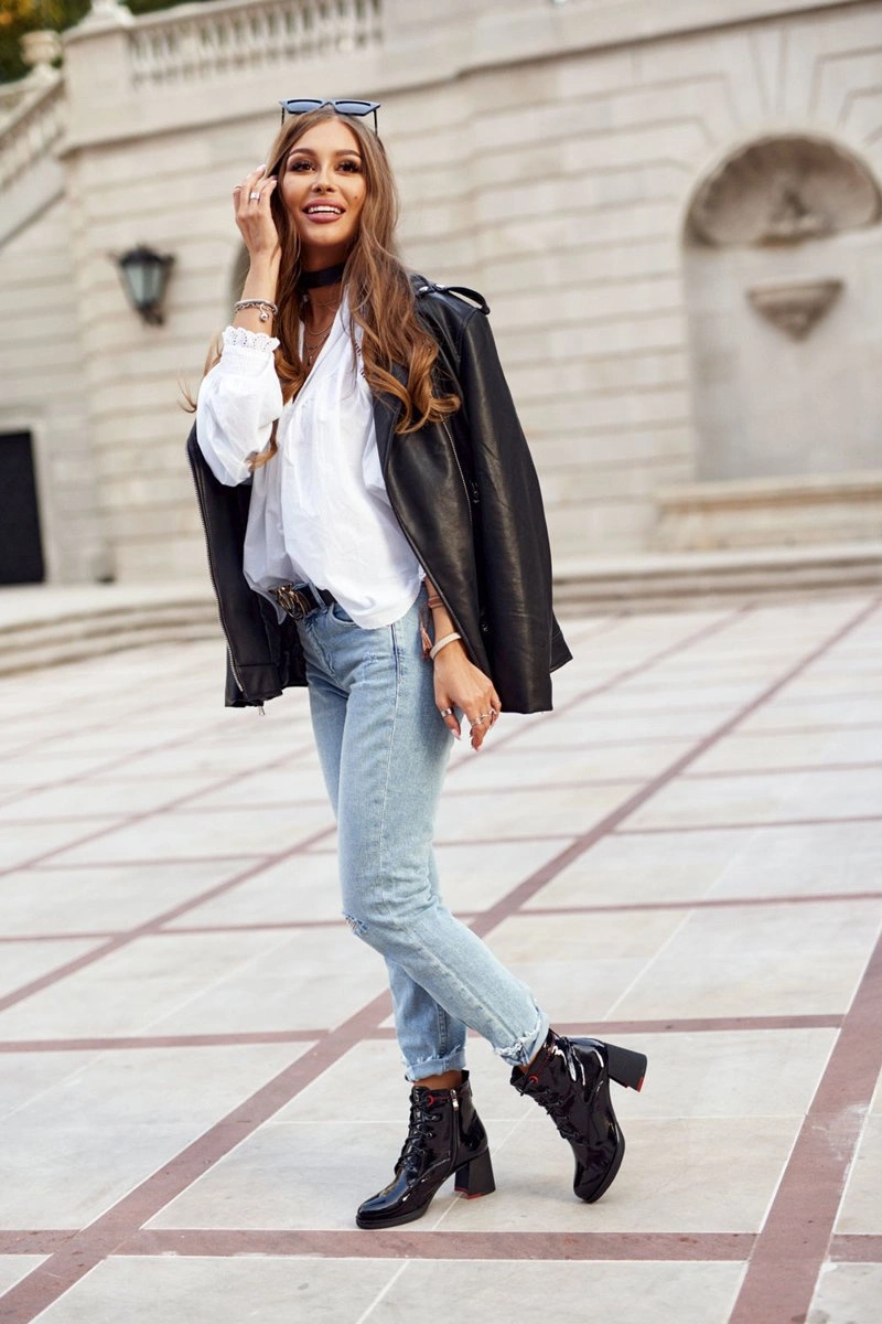 Marzyłaś o kolejnej parze butów, która zachwyci wszystkich dookoła? Jeśli tak to nie musisz już szukać dalej. Klasyczny krój na słupku nigdy nie wyjdzie z mody, a połączenie go z lakierowaną skórą ekologiczną to po prostu strzał w 10! Botki posiadają zamek błyskawiczny ułatwiający zakładanie oraz klasyczne sznurowanie dla jeszcze lepszego dopasowania. W chłodnie dni nie musisz się martwić co założyć, ponieważ botki wewnątrz posiadają delikatne ocieplenie w postaci koca obuwniczego. Przy wyborze rozmiaru prosimy sugerować się tabelą rozmiarów.