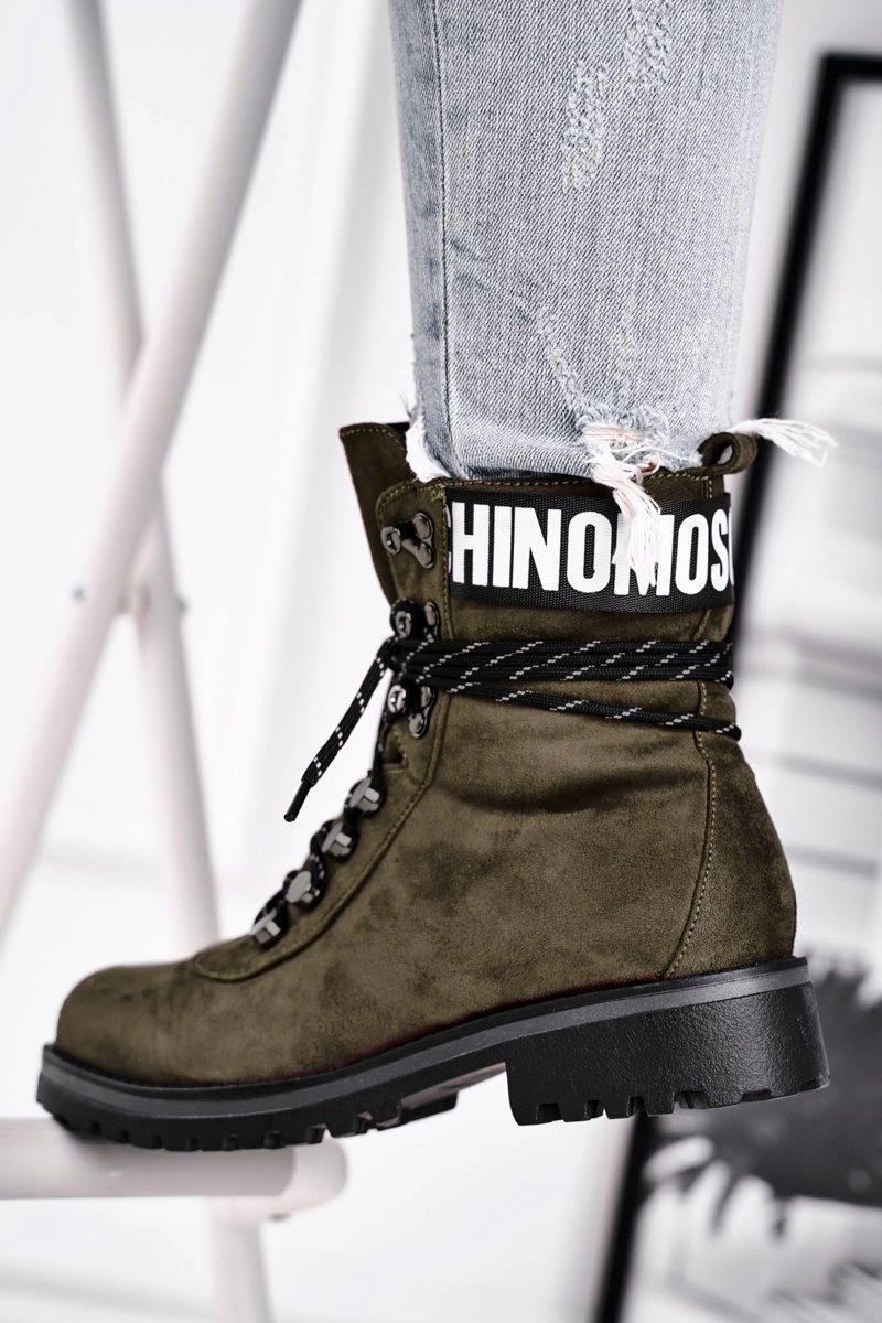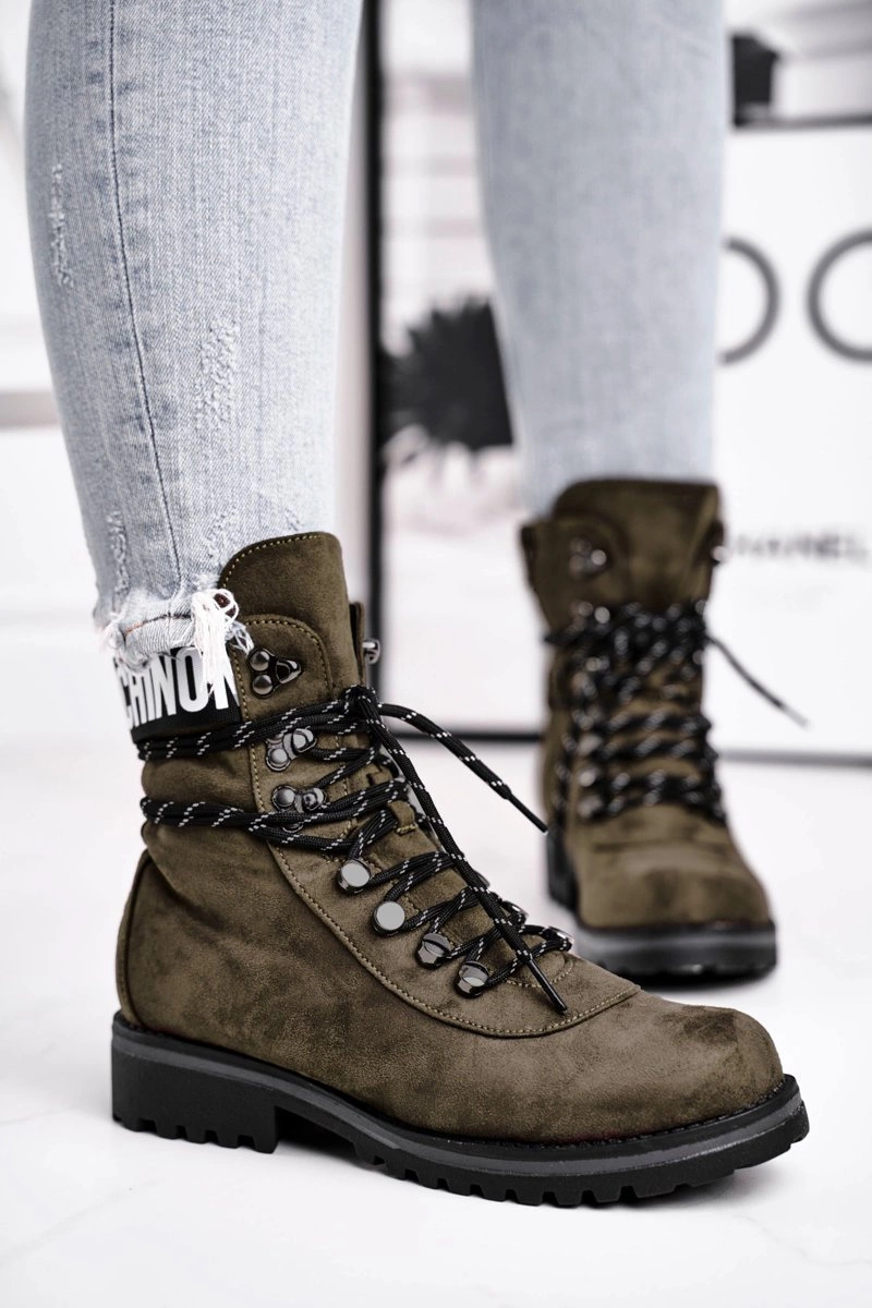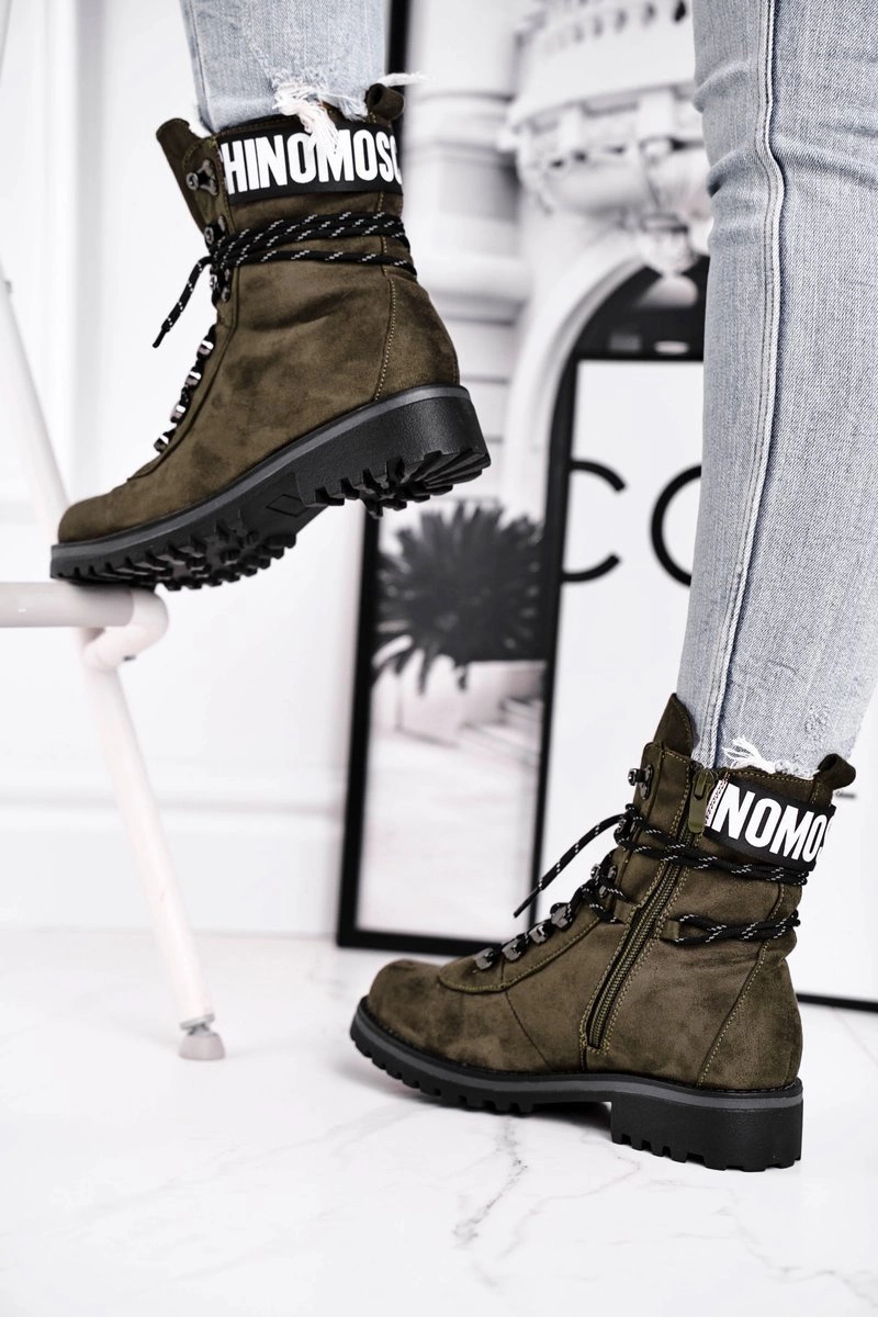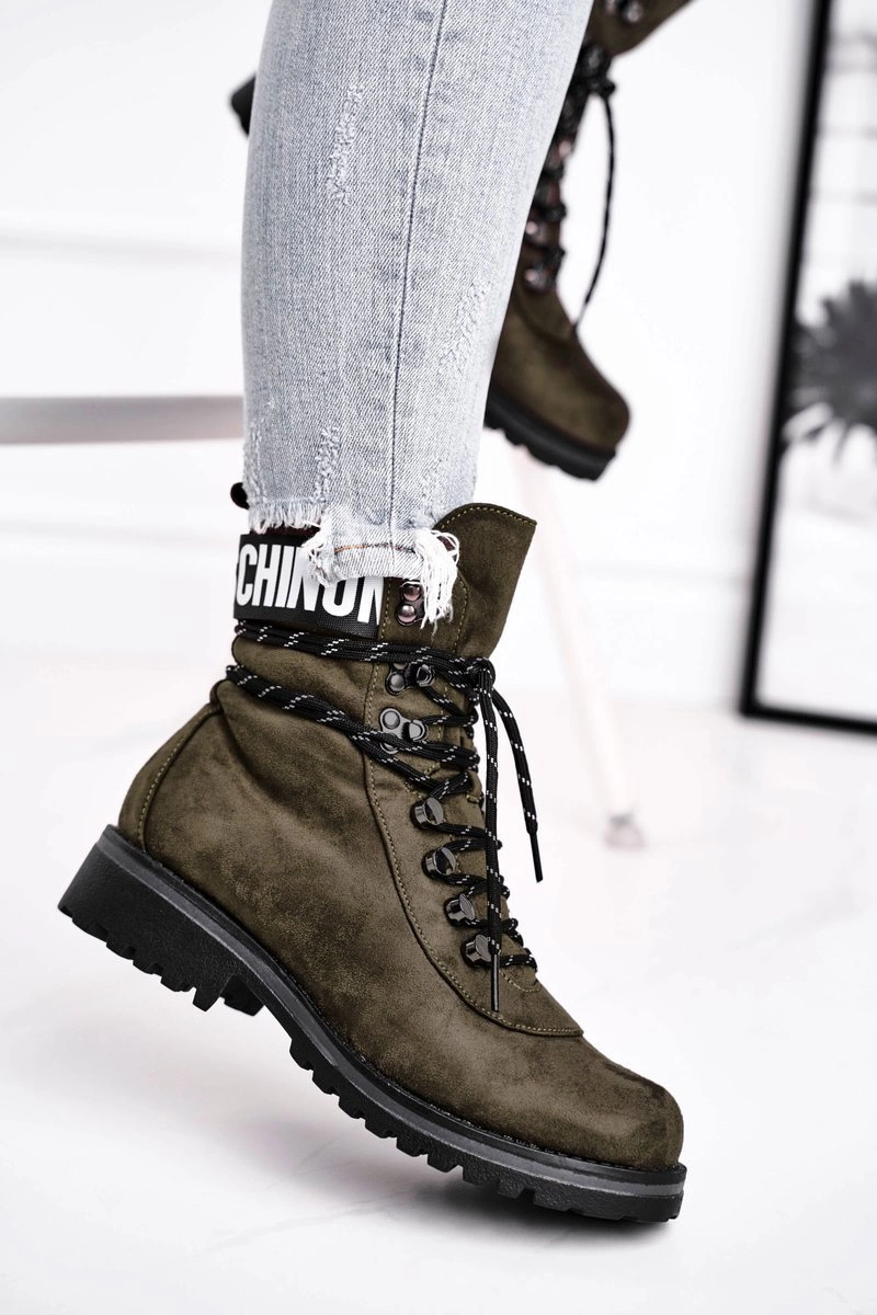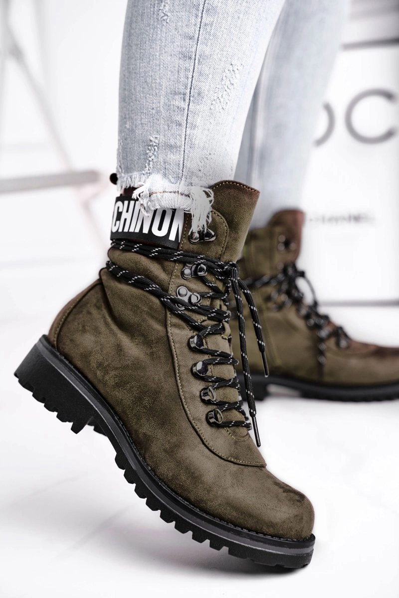 Botki Damskie Płaski Obcas Na Suwak Zielone Popsi