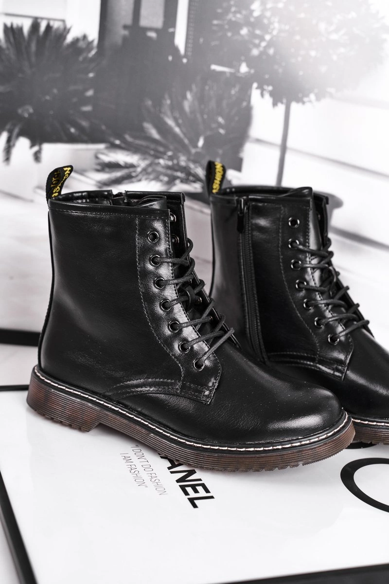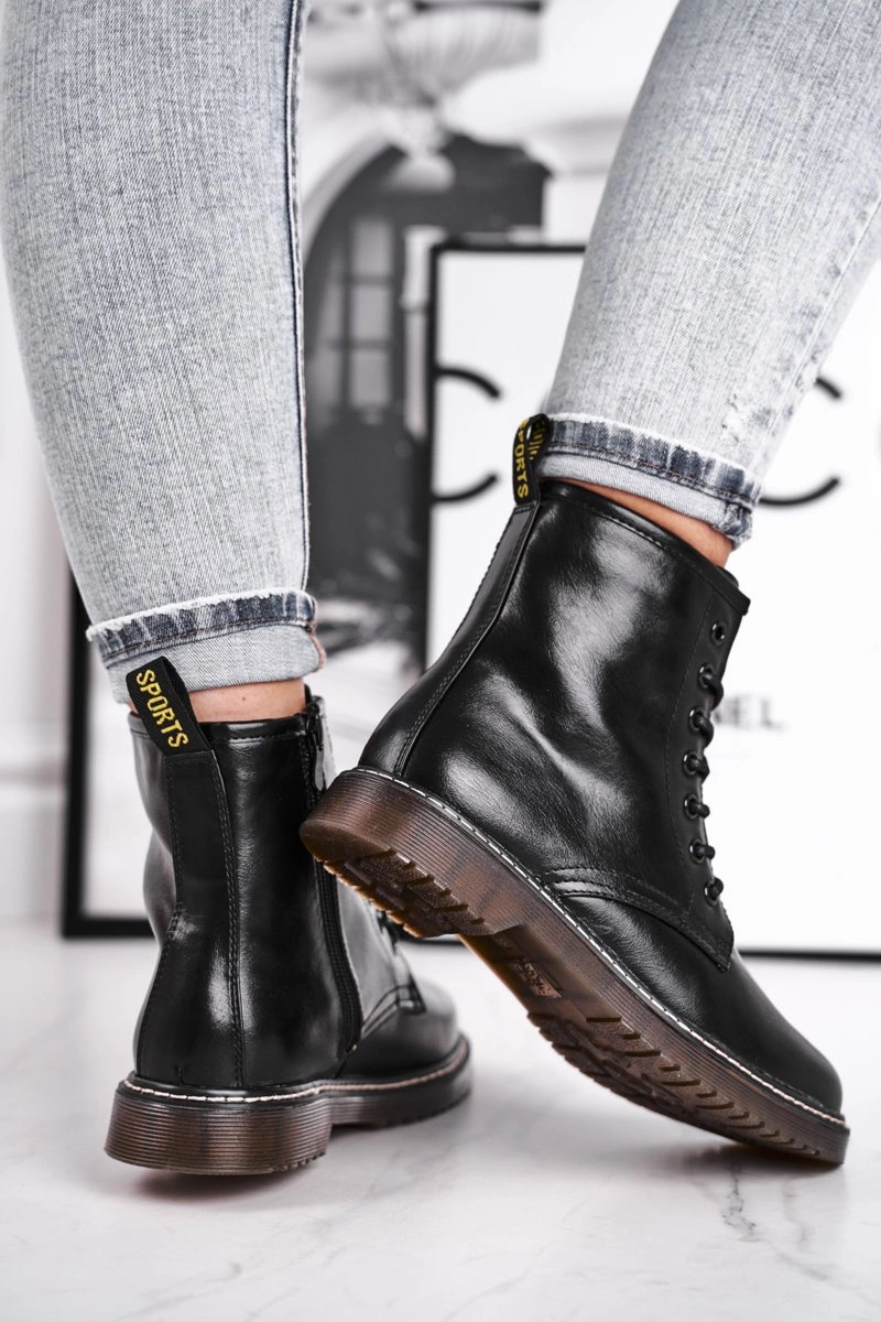Botki Damskie Trapery Glany Czarne Marita