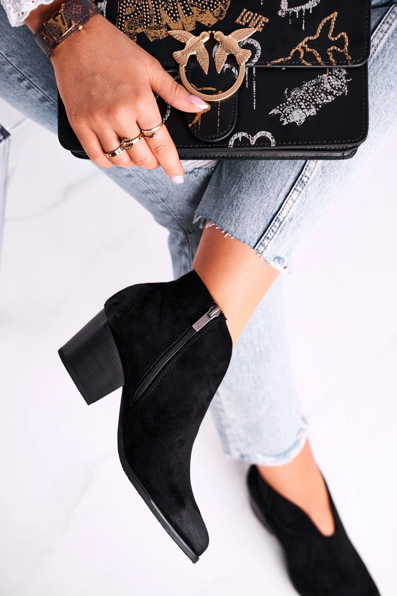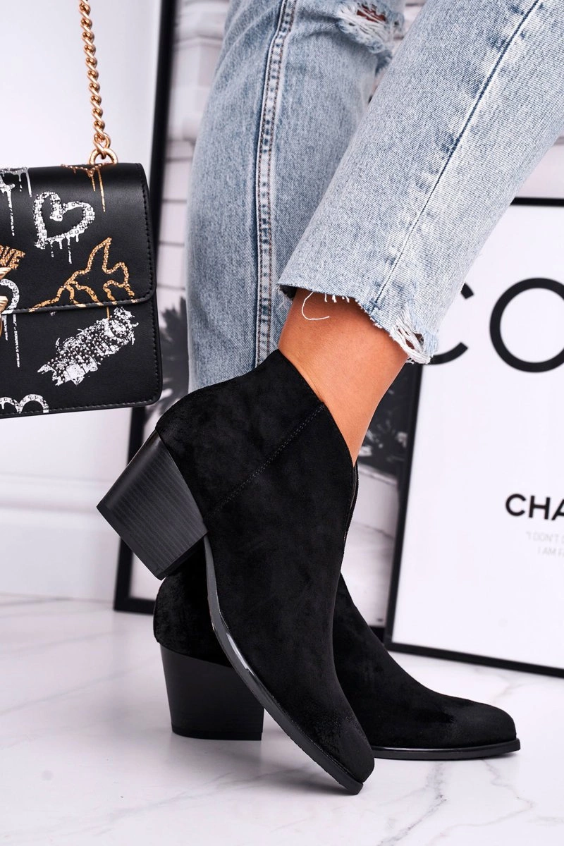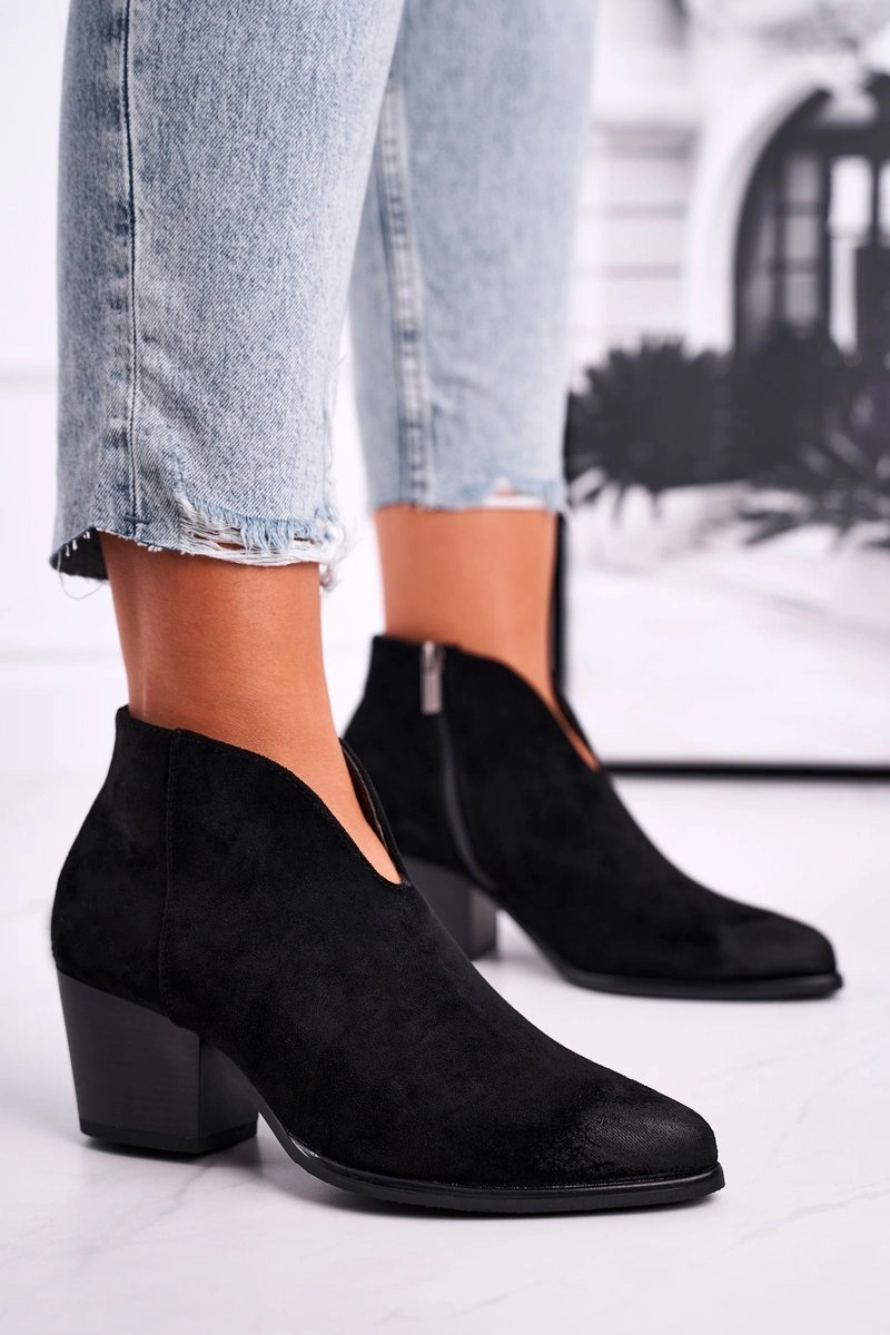 Botki Damskie Z Wycięciem Czarne Best Choice