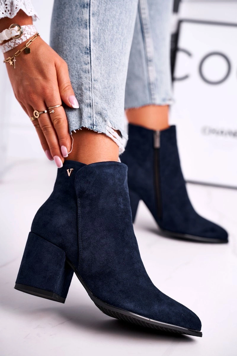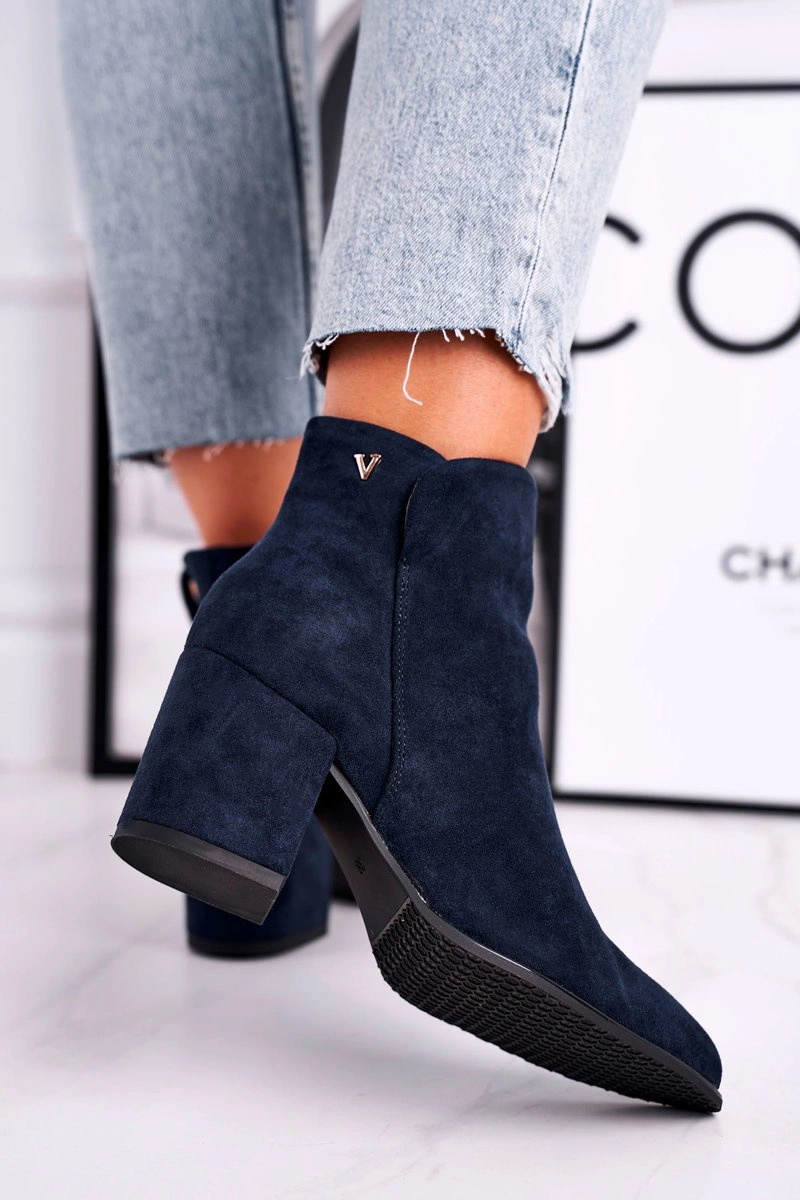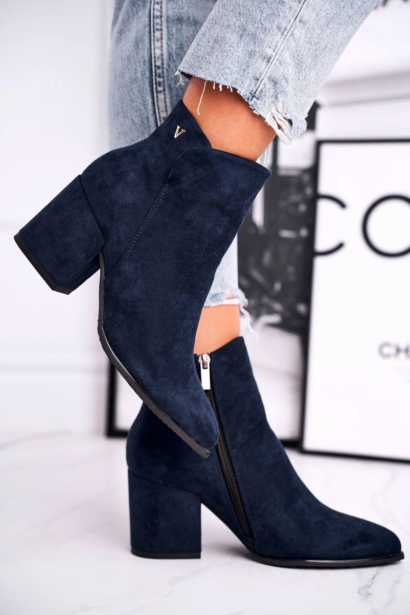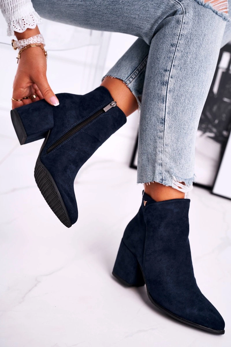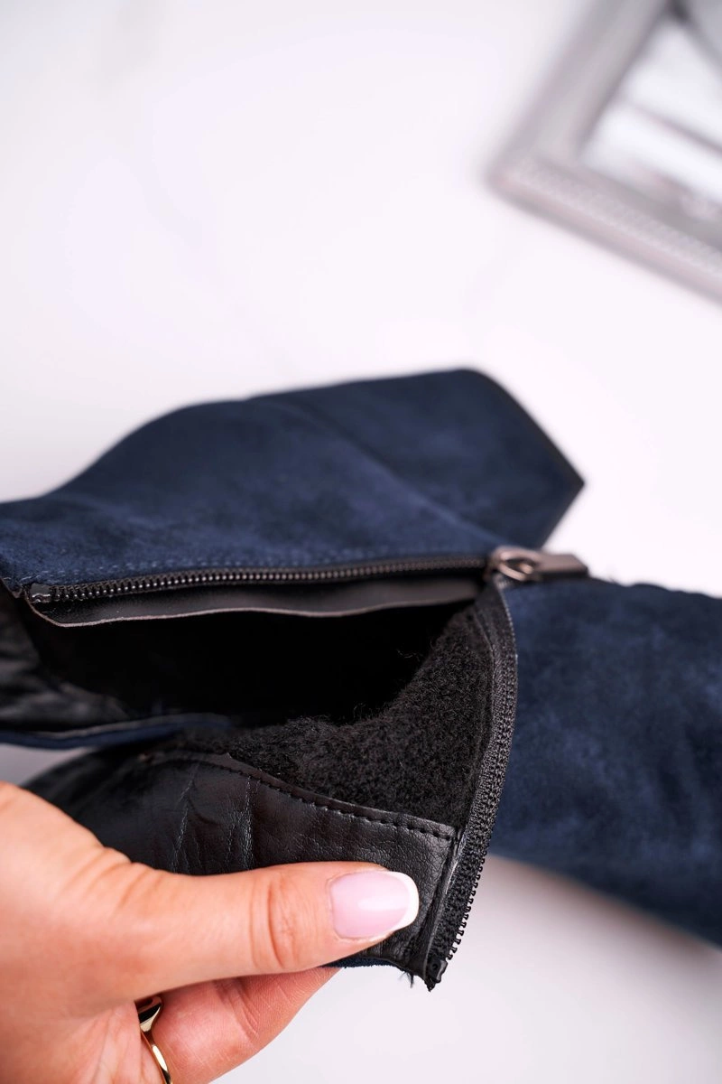 Botki Damskie Ciepłe Eko Zamsz Granatowe So Good