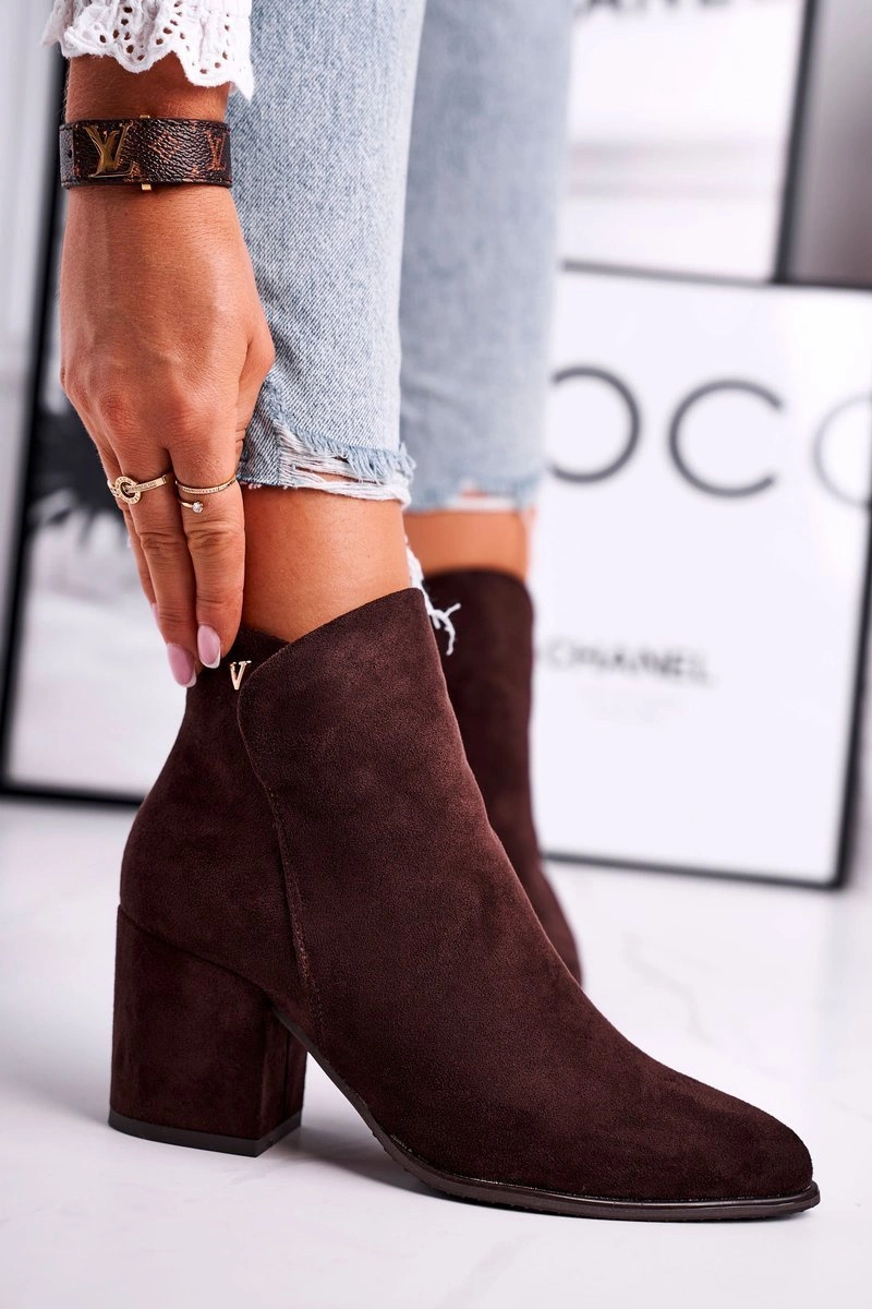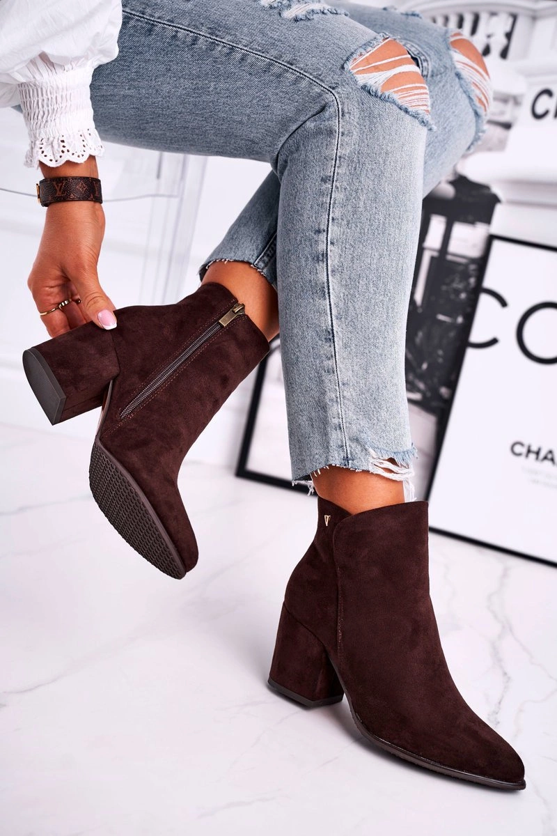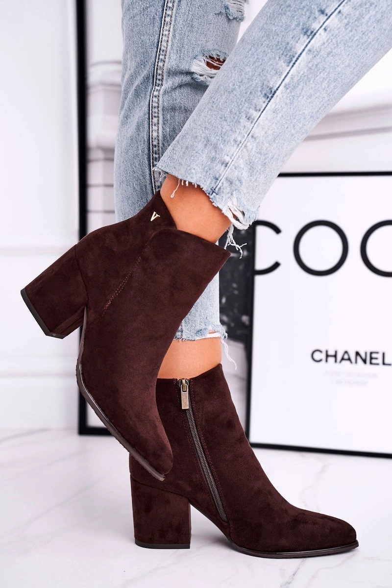 Botki Damskie Ciepłe Eko Zamsz Brązowe So Good