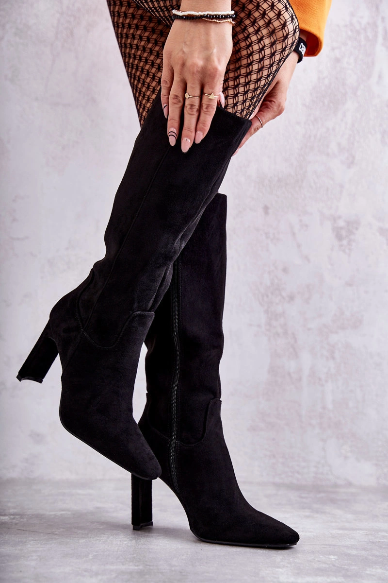 Kozaki Damskie Na Słupku Do Kolana Czarne Truly Love