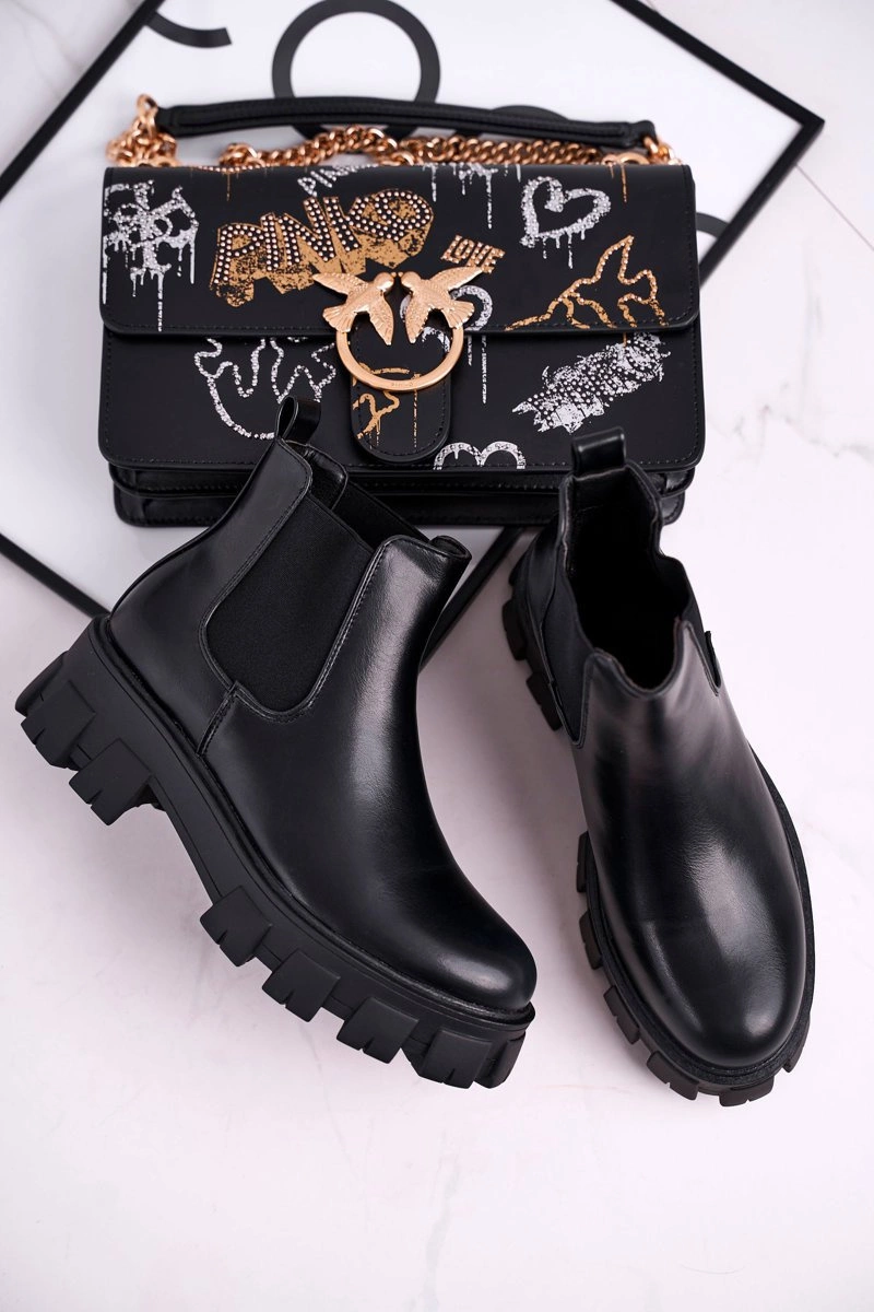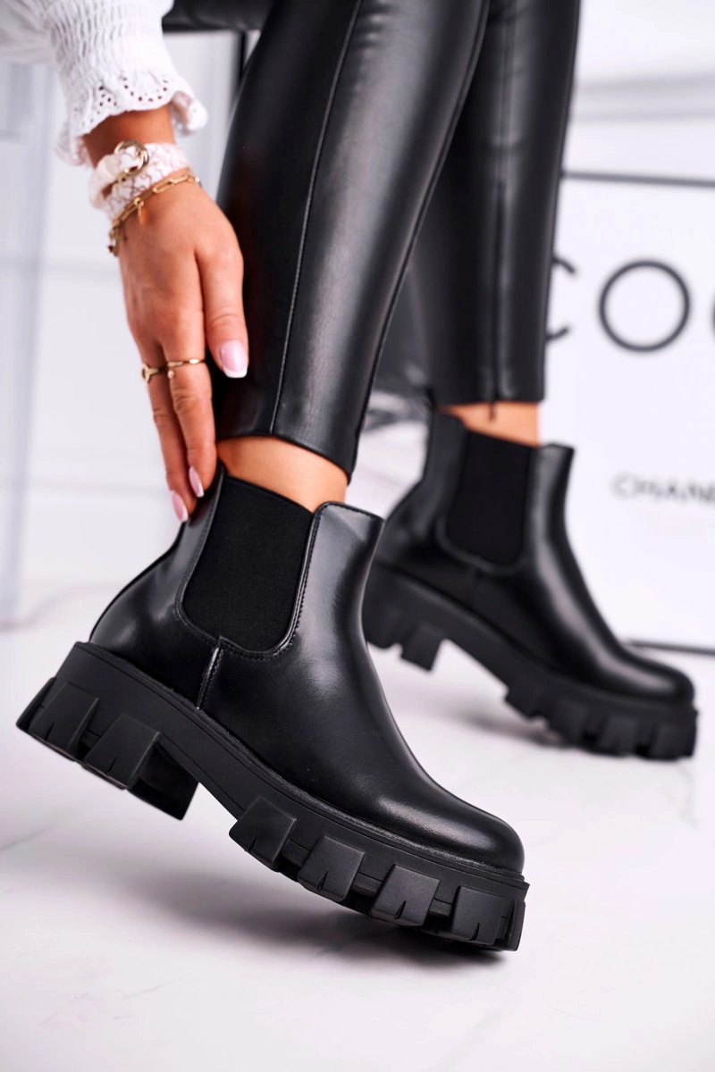Czy może nas coś jeszcze zaskoczyć? Oczywiście! Spójrz na te przepiękne botki! Botki wykonane ze skóry ekologicznej, wewnątrz ocieplone kocem obuwniczym z krótkim włosiem, więc o ciepło w chłodnie dni nie musisz się martwić. Masywna podeszwa, wysoka cholewka połączona z gumami - botki świetnie wpiszą się w stylizacje glam rock lub grunge. Przy wyborze rozmiaru prosimy sugerować się tabelą rozmiarów.