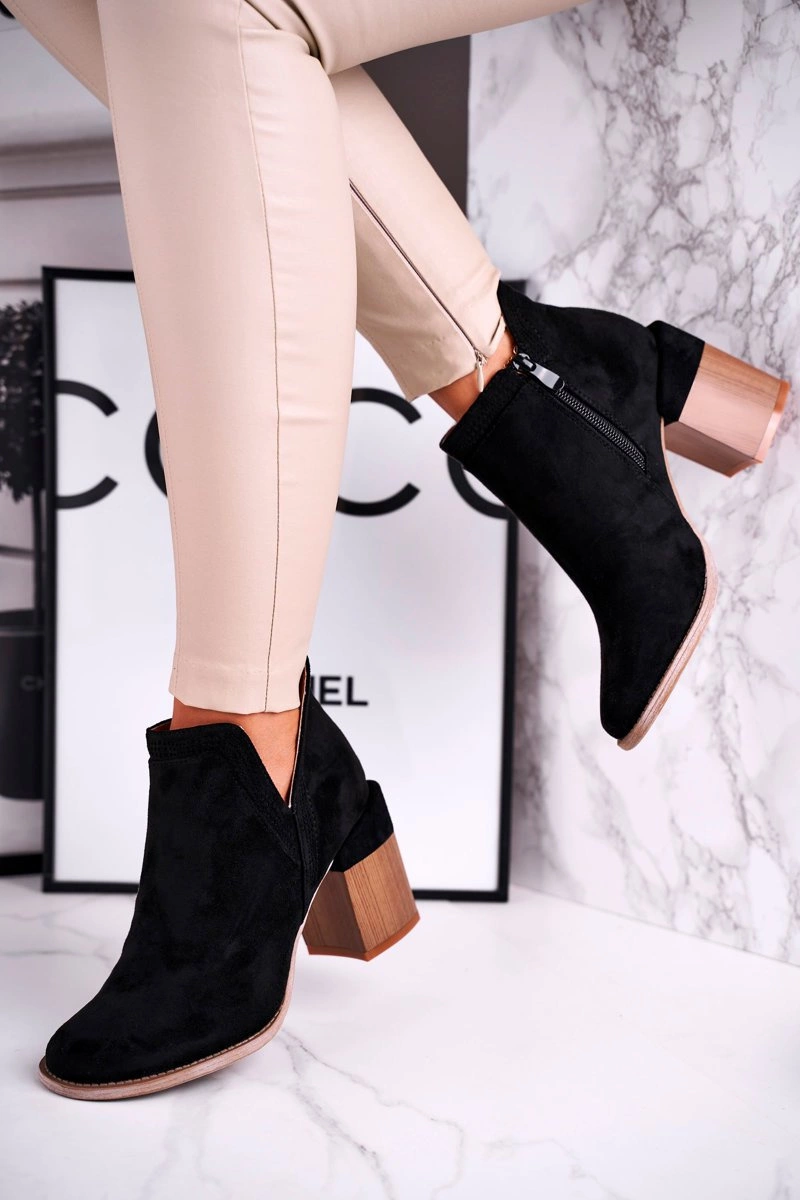 Damskie Botki Na Słupku Wycięte Czarne Meliori Dream