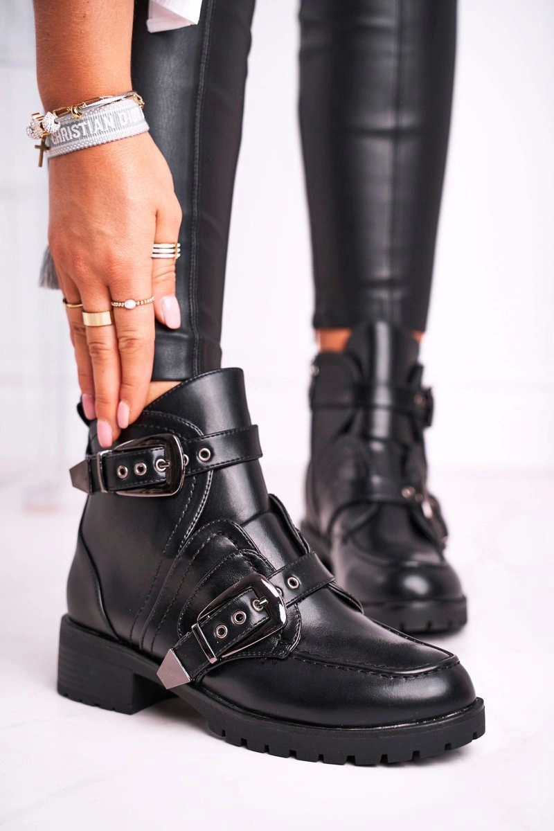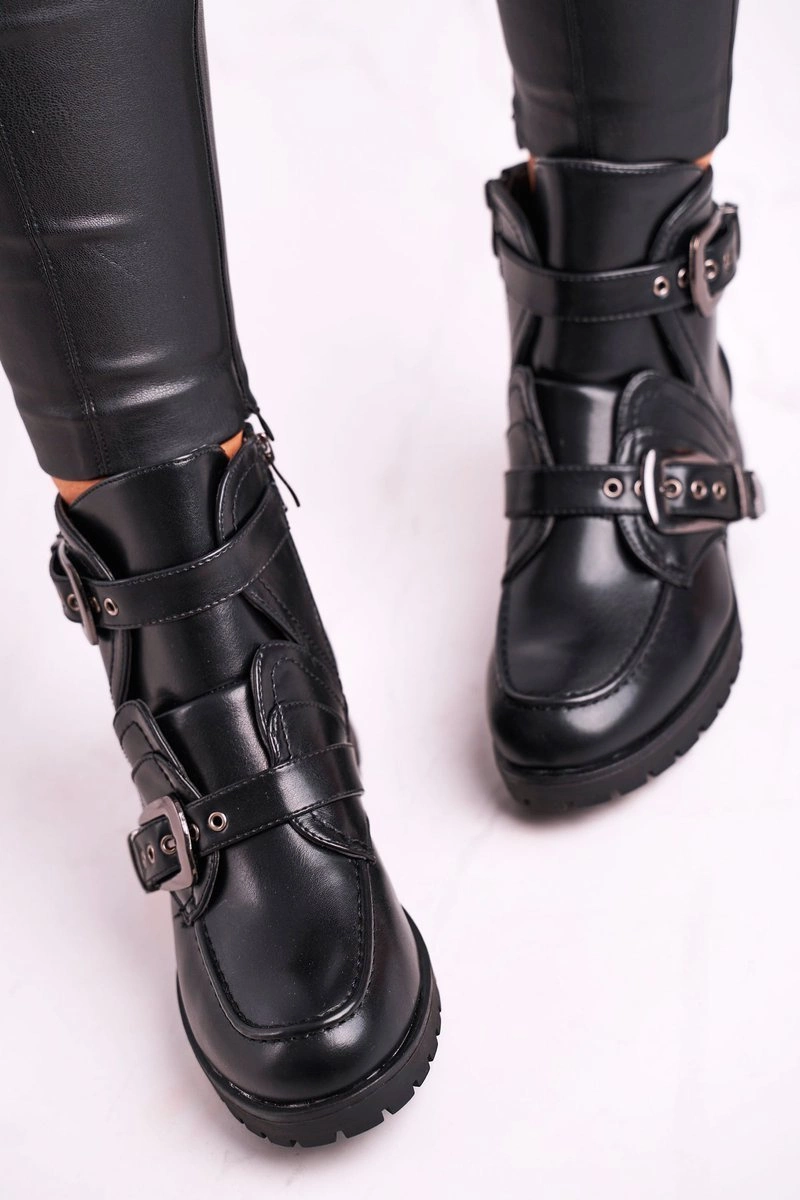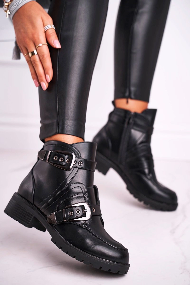 Damskie Botki Z Klamrami Ocieplane Skadi Czarne