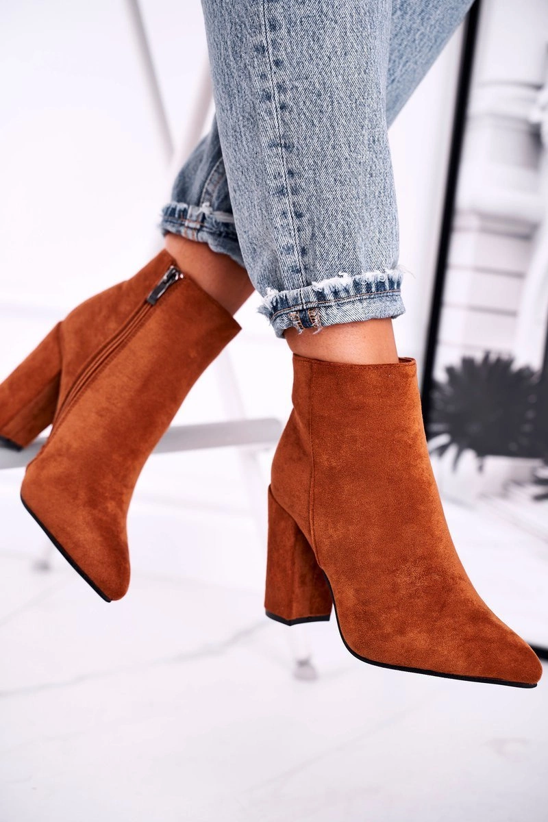 Botki Damskie na Słupku Zamszowe Camel Sharks