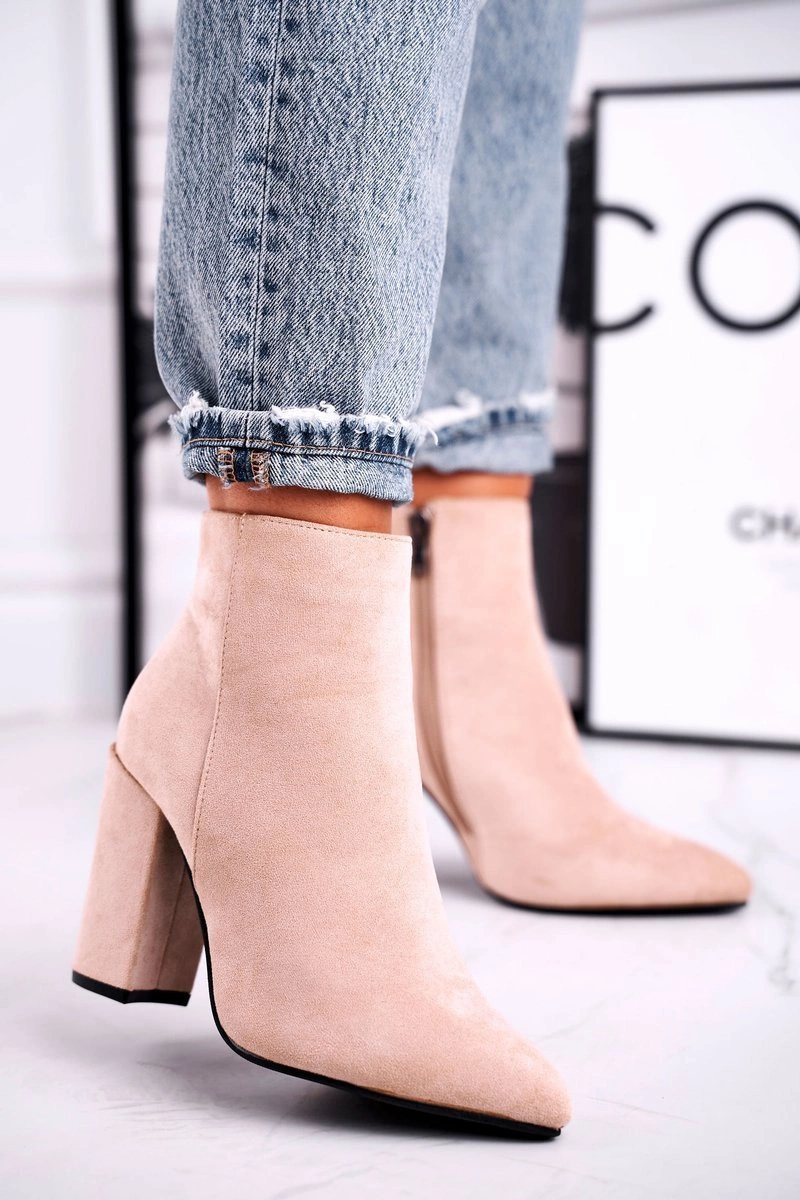 Botki Damskie na Słupku Zamszowe Beżowe Sharks