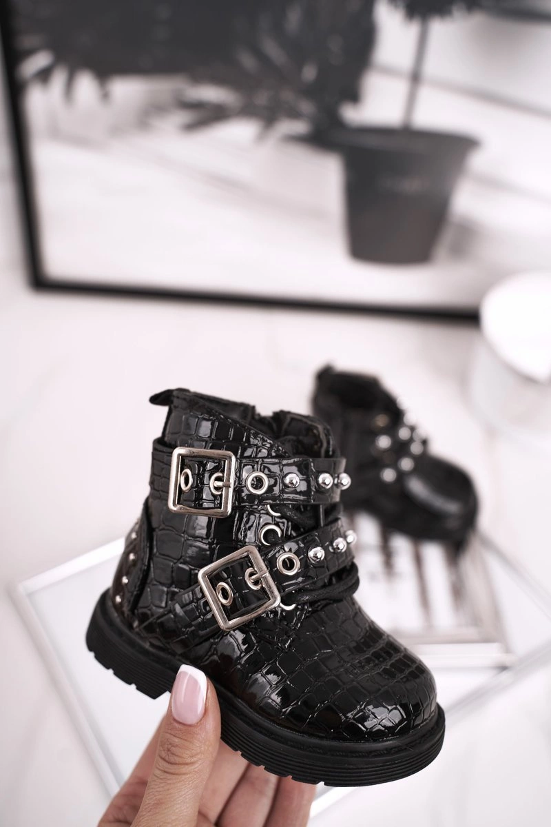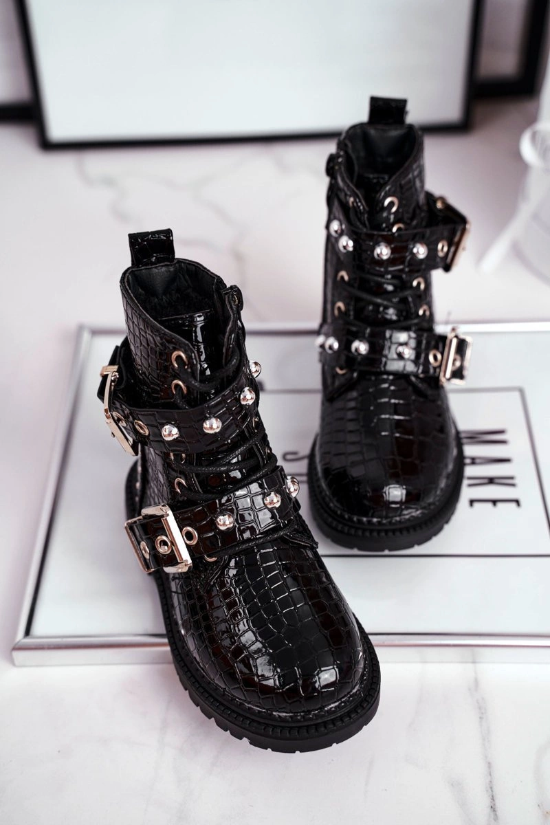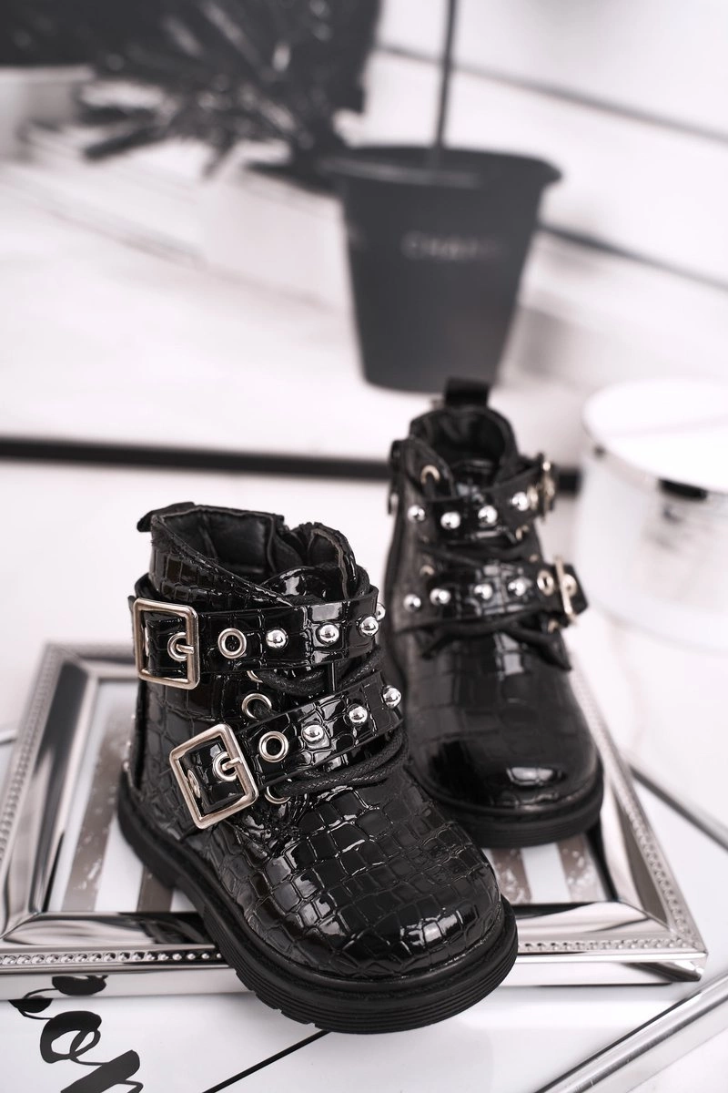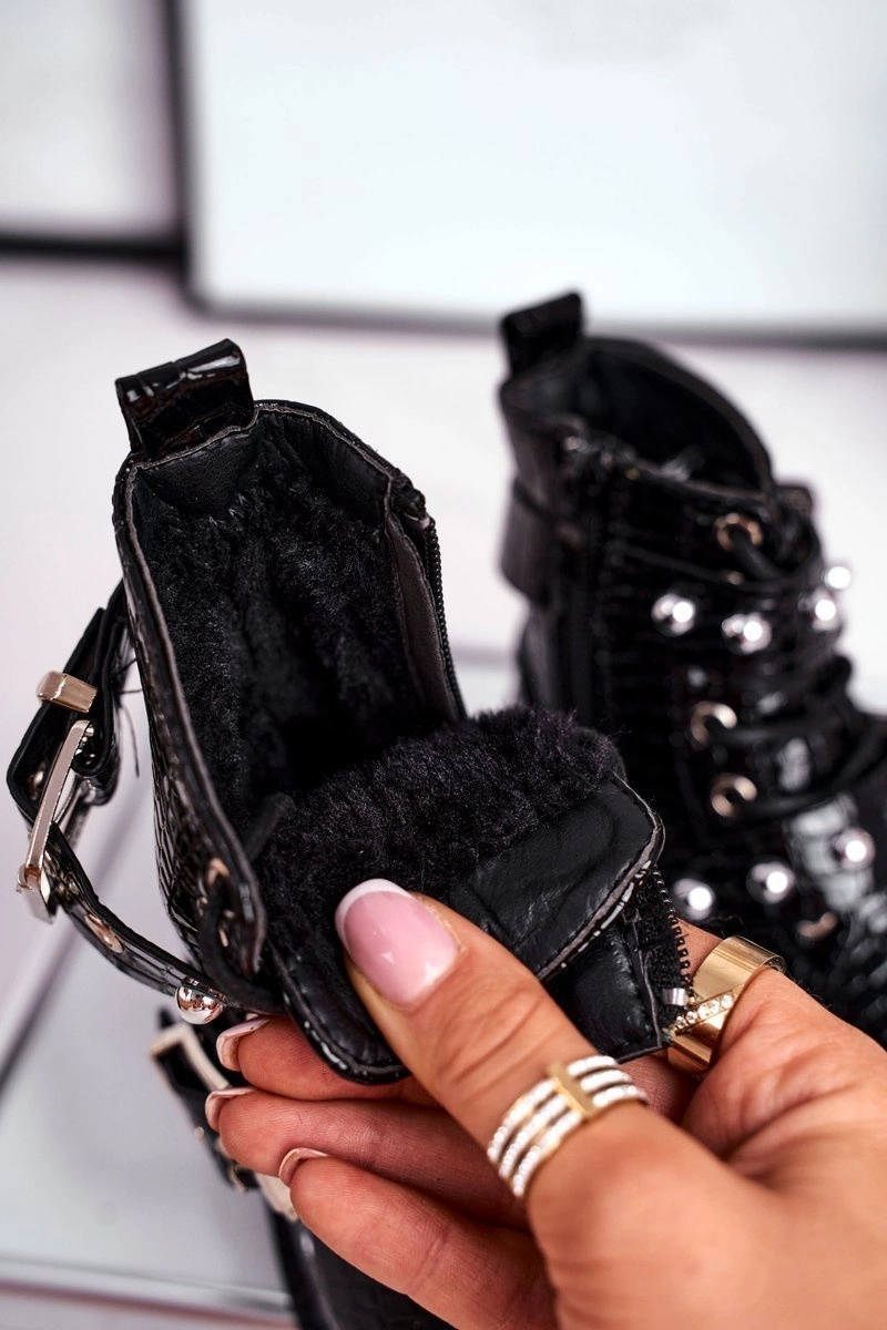 Dziecięce Botki Ocieplone Futerkiem Lakierowane Czarne Mary