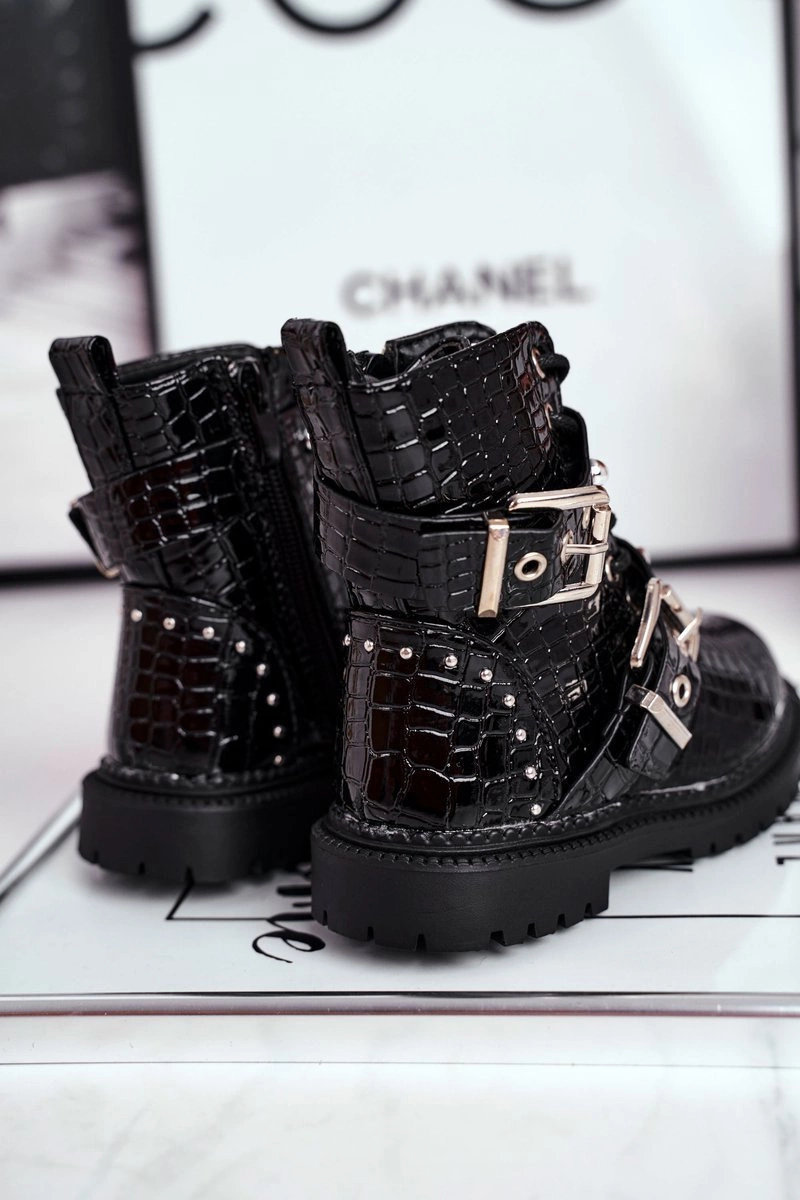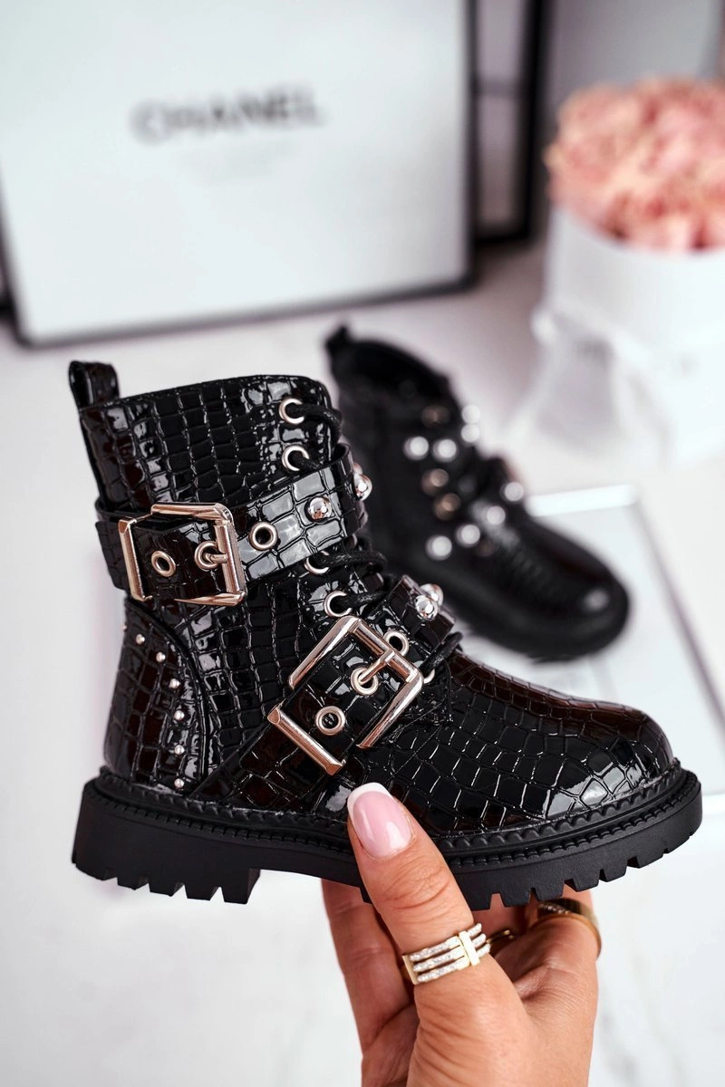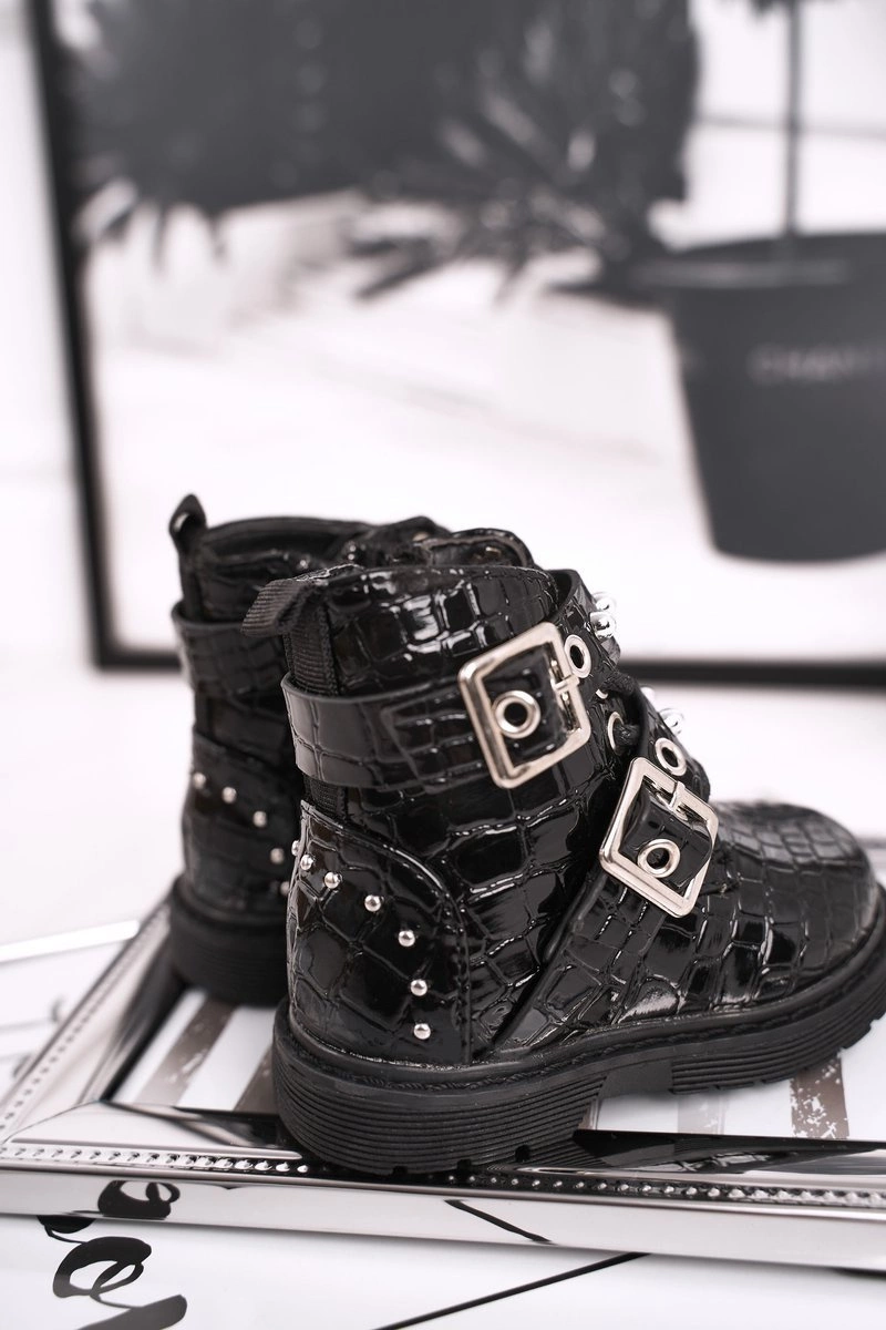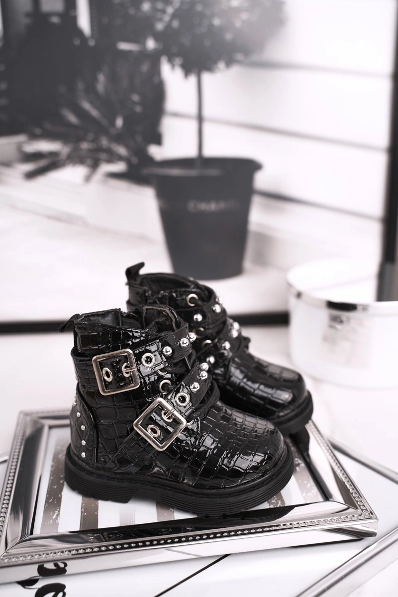 Dziecięce Botki Ocieplone Futerkiem Lakierowane Czarne Mary