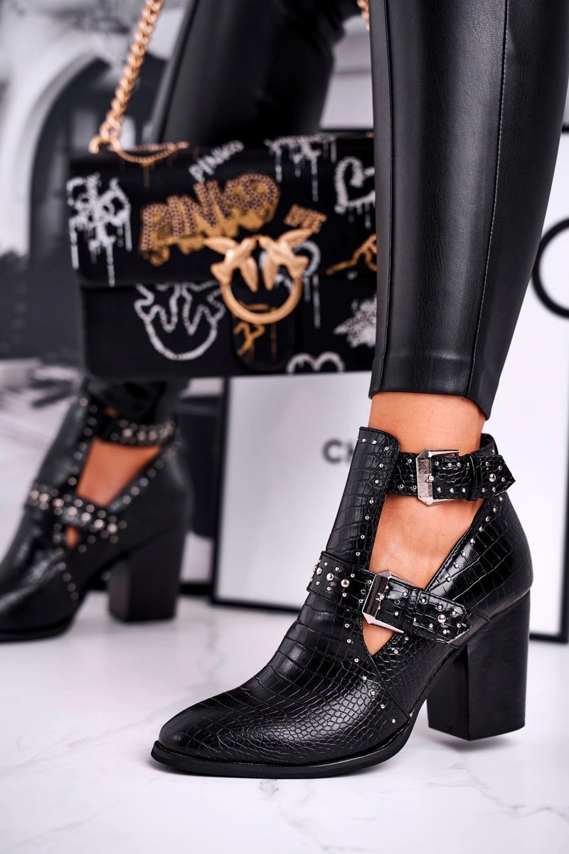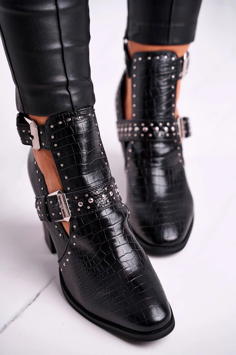 Botki Damskie Z Wycięciami Croco Czarne Aria